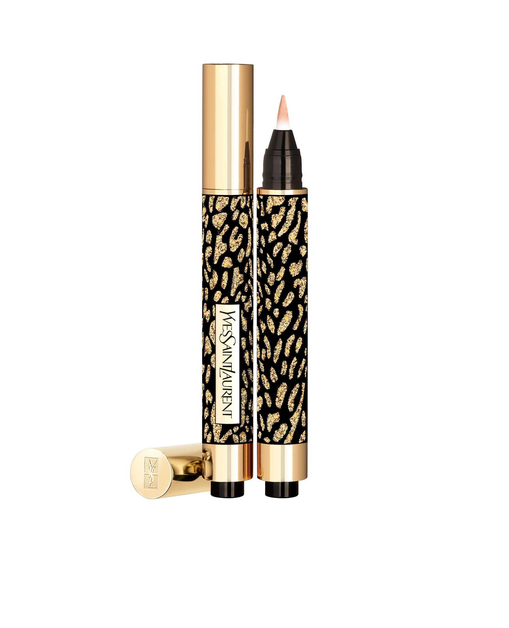 全世界で10秒に1本売れているというロングセラーのコンシーラー&ハイライター「ラディアント タッチ」からもホリデー限定のレオパード柄パッケージが登場。筆ペンタイプで、手を汚さずにピンポイントで肌に明るさと輝き、透明感を与えます。