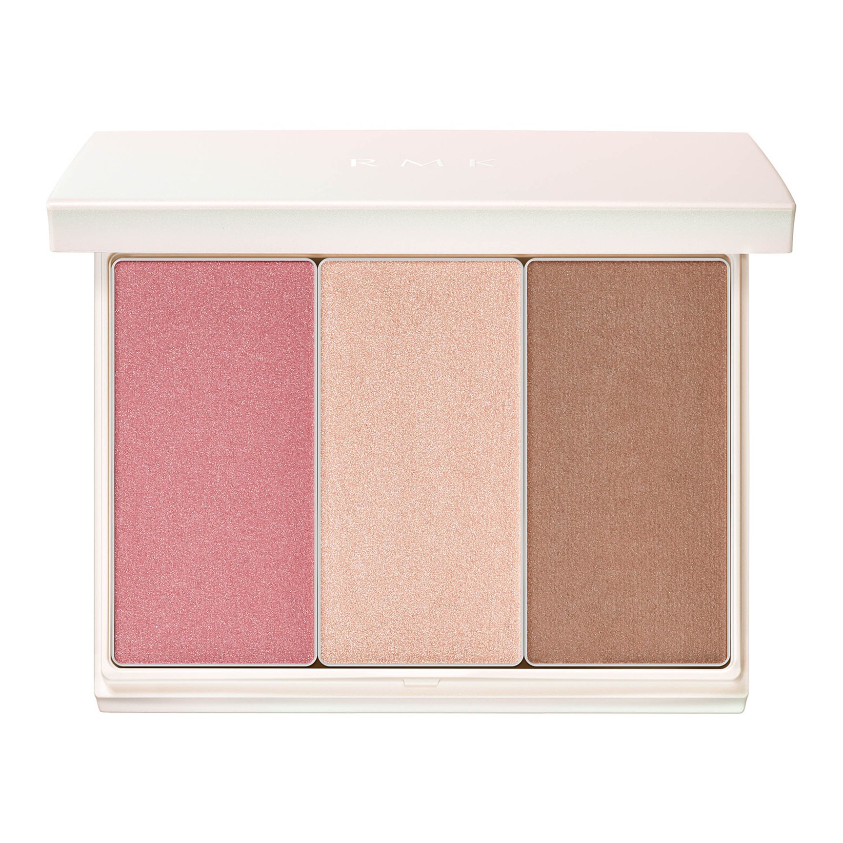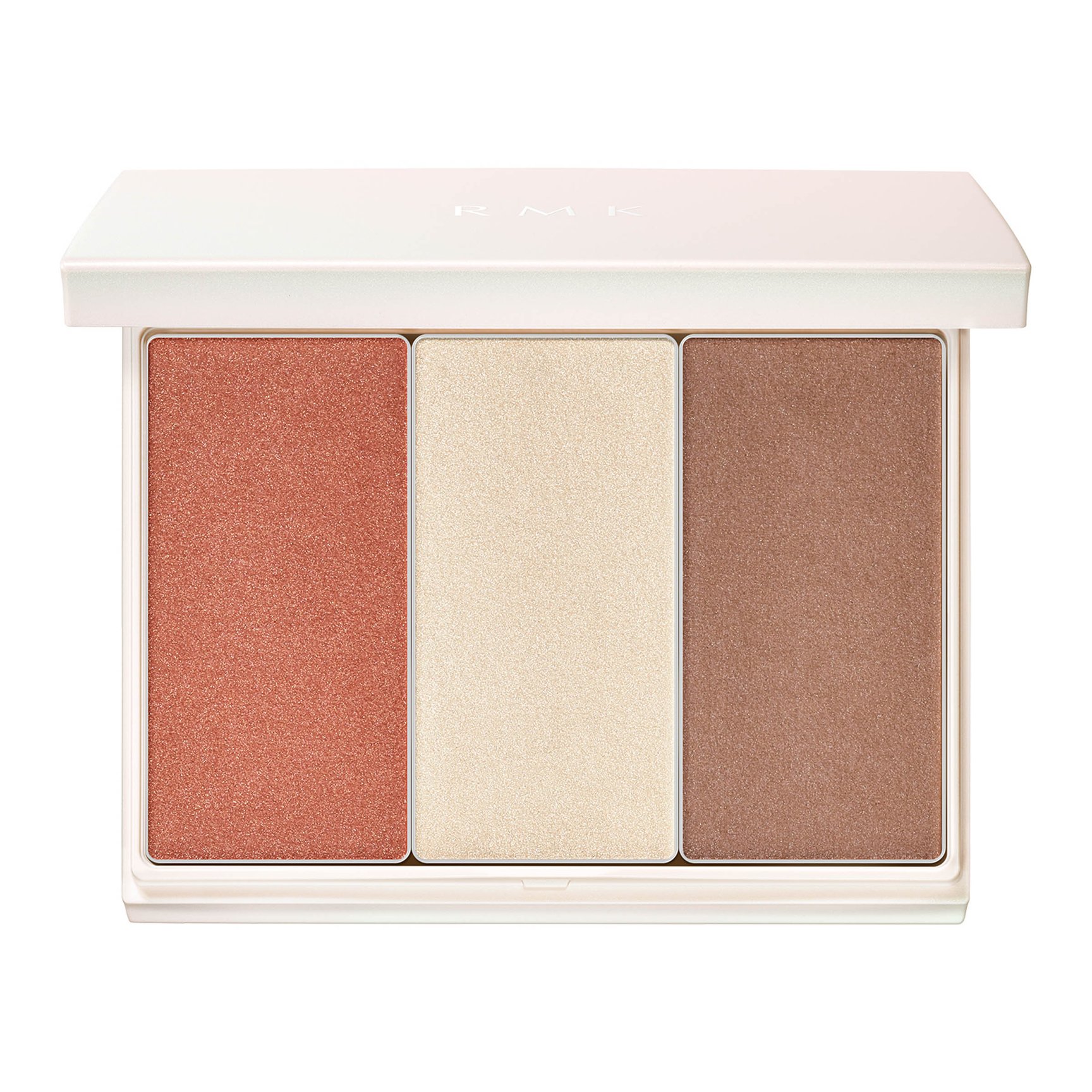 「プリズマティックラスター フェイスパレット」01 ウォームグロー(6050円)(左から)ブラッシュ、ハイライト、チーク(コントゥア)