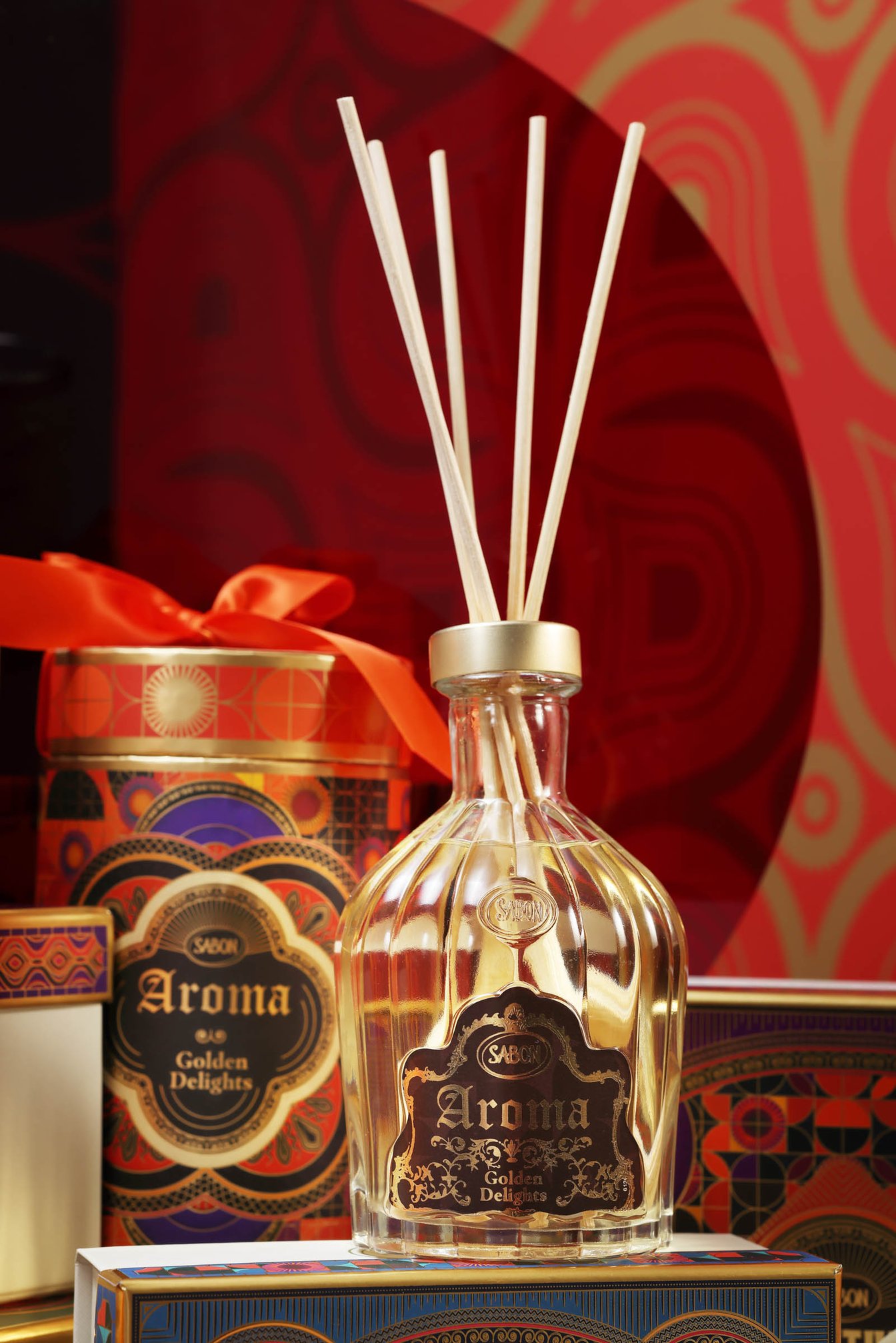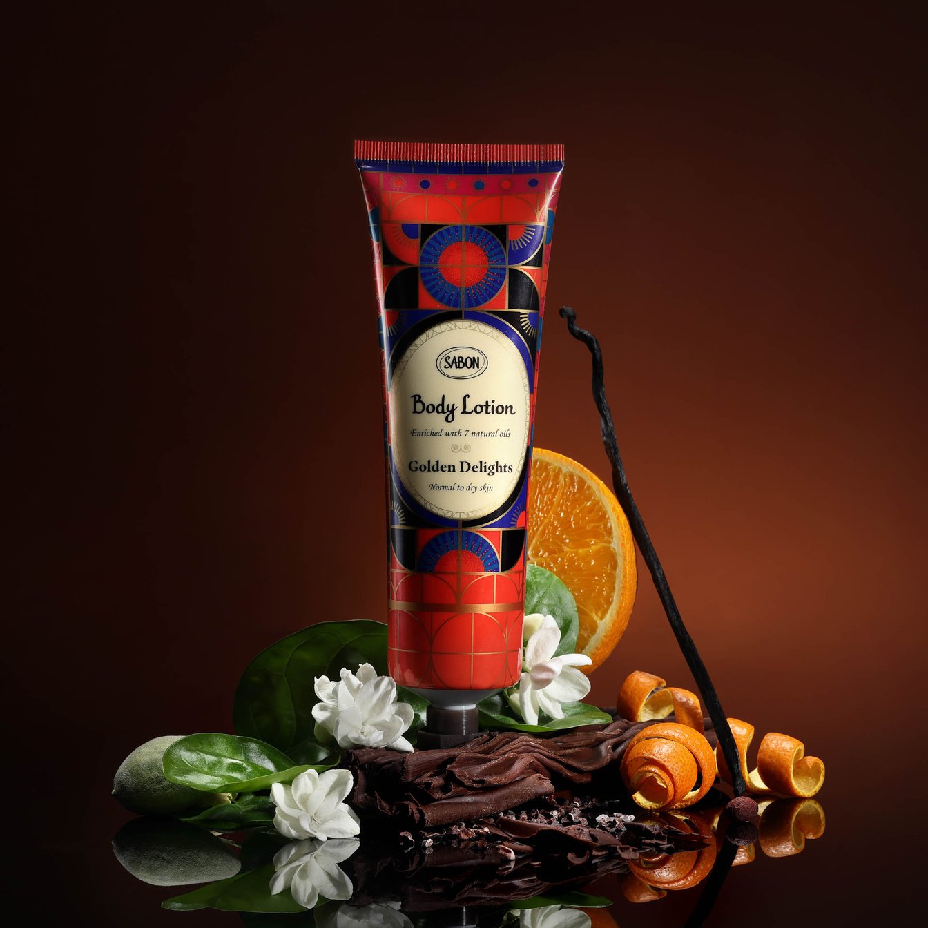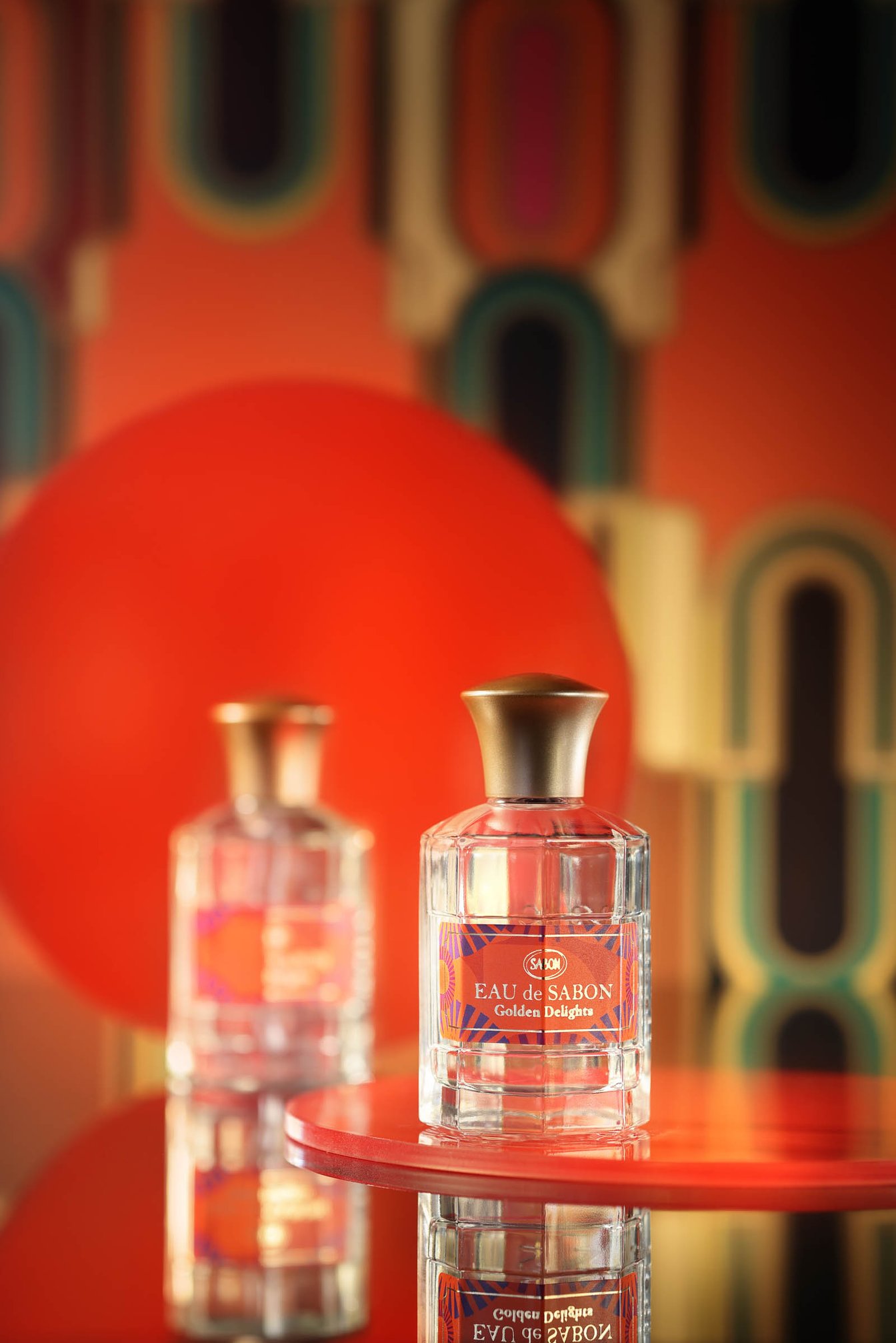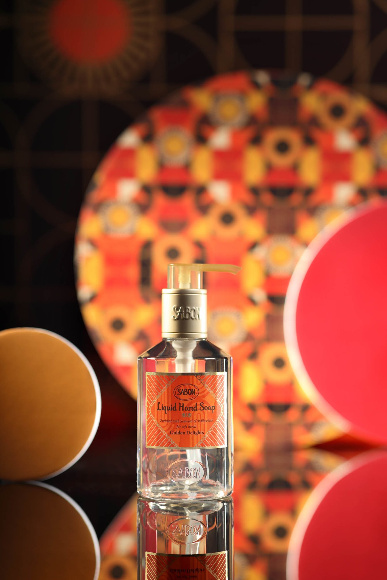 サボンは「Everything You Can Imagine」をテーマに、無限の夢が広がるホリデーシーズンを祝福。限定の香り「ゴールデン・ディライト」は、トップノートのライムやジンジャー、クレメンタイン、ブラッドオレンジから、ミドルノートでアーモンド、キャラメル、チョコレートといった香ばしい甘さに変化し、ラストノートでバニラインフュージョンとバーボンバニラが奥行きのある甘さを加える。パッケージはイスラエルの彫刻家で実験芸術家でもあるヤコブ・アガム(Yaacov Agam)が手掛け、色とりどりの幾何学模様をあしらった。