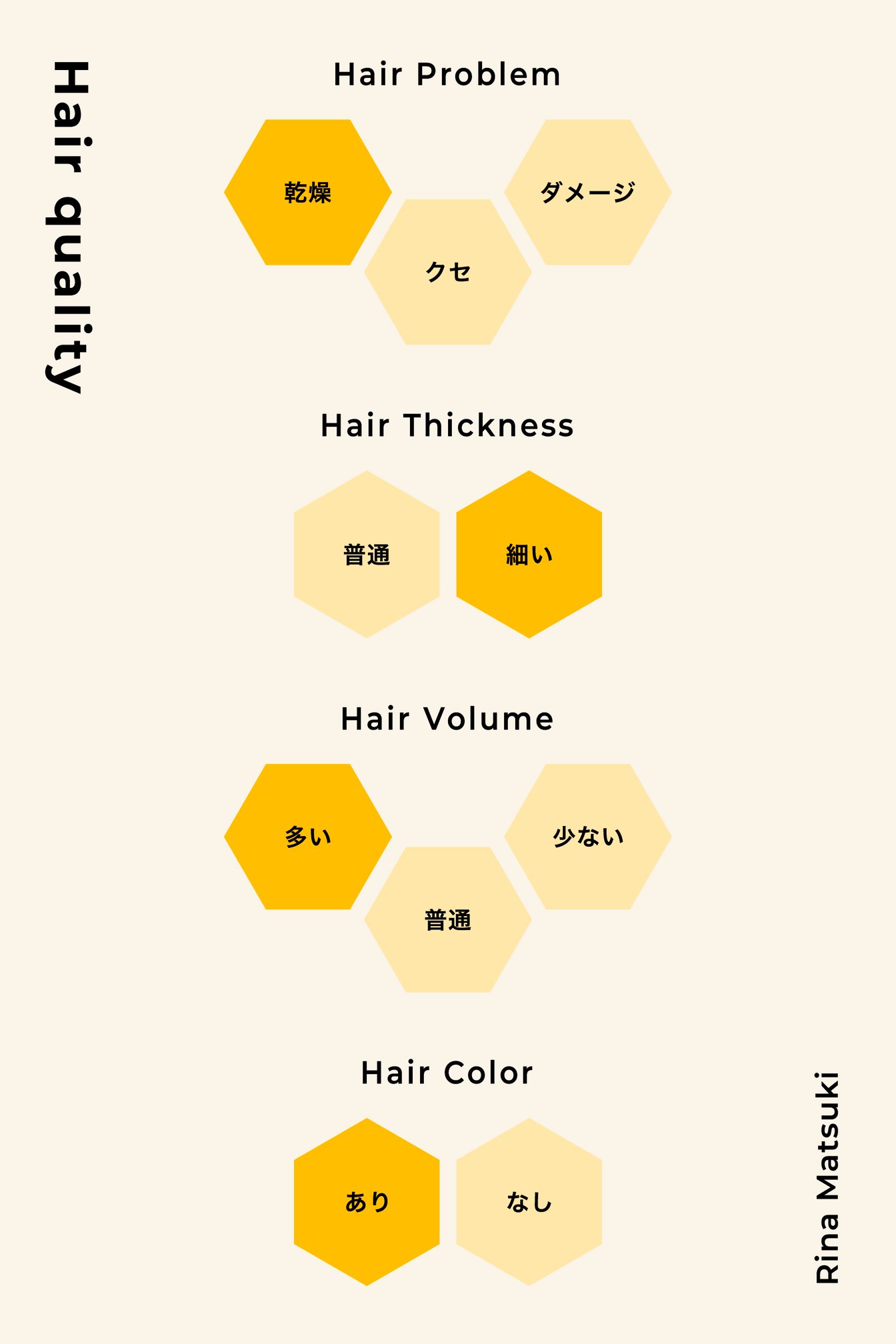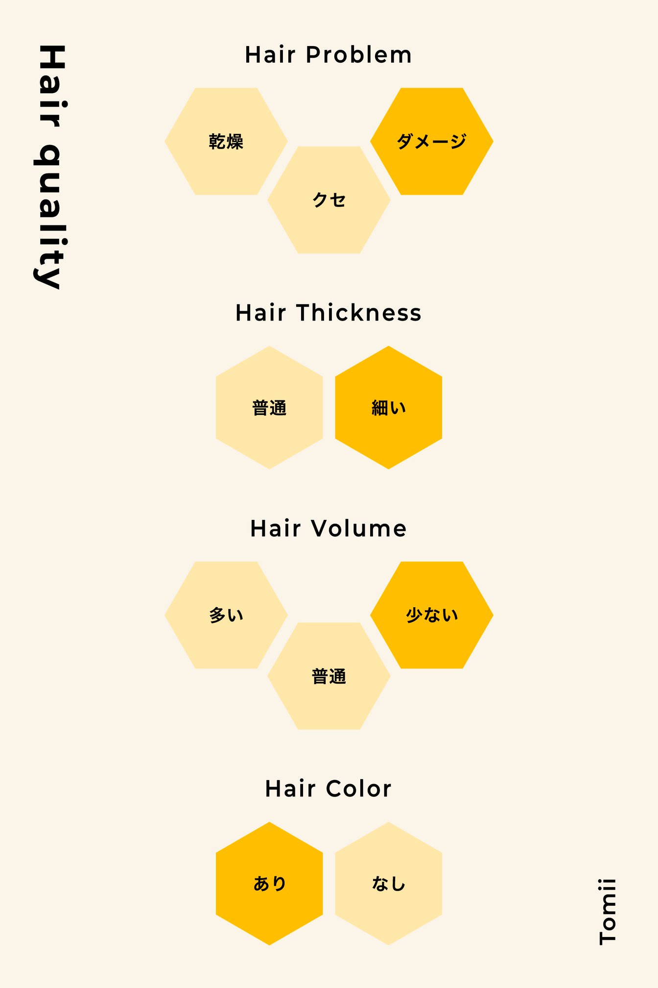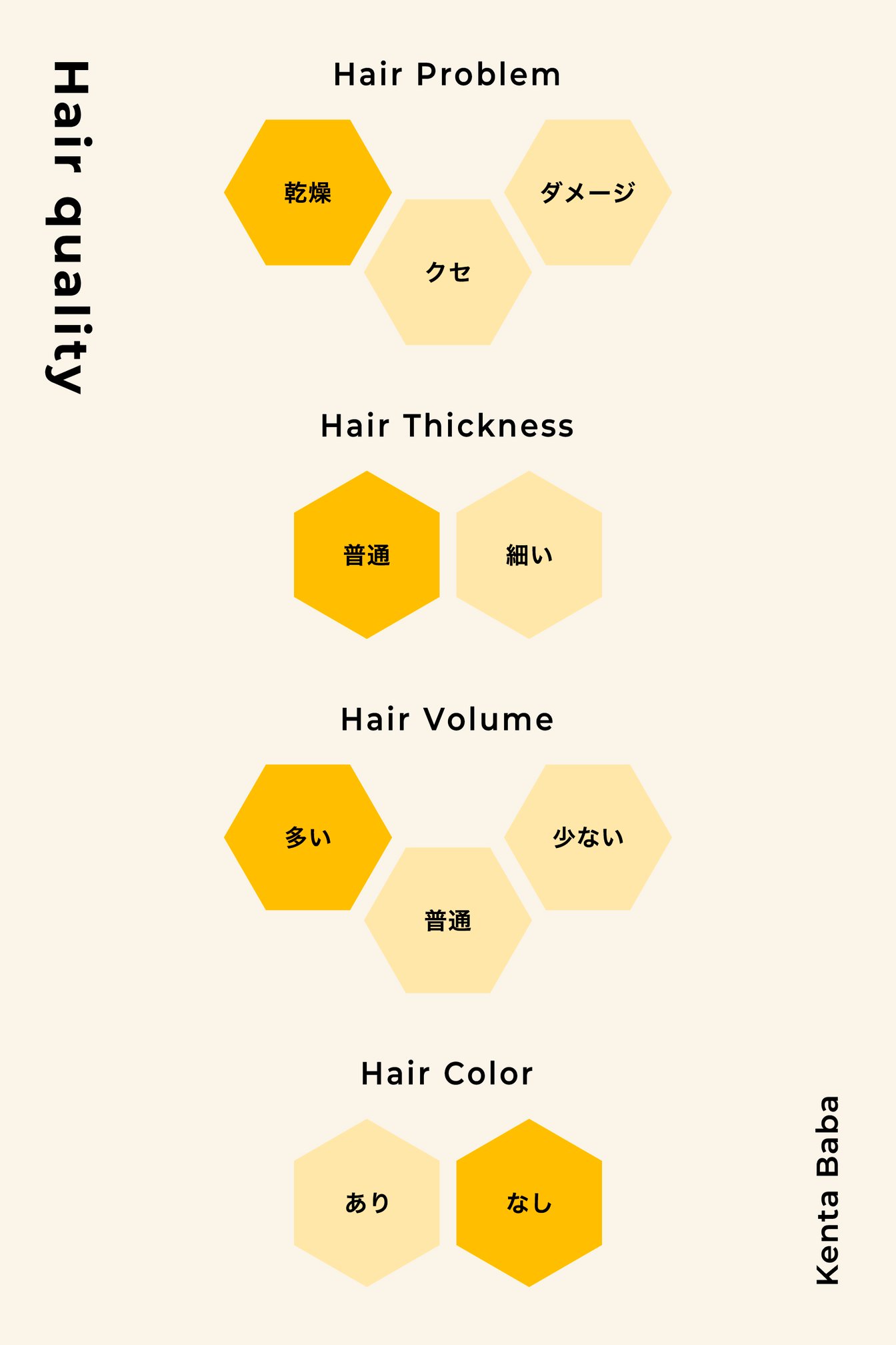 髪の悩み:襟足と前髪に癖ありで、ヘアセットに時間がかかる。