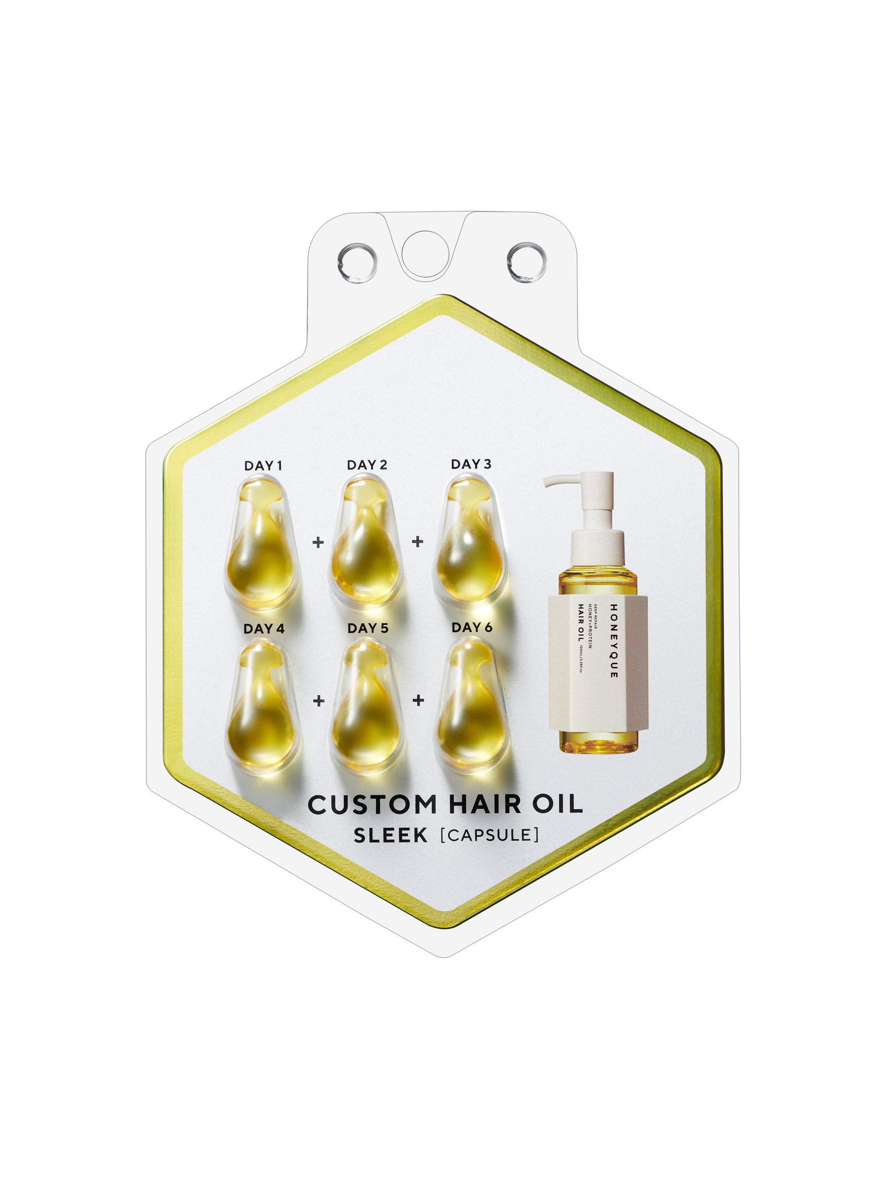 「ハニーク ディープリペア カスタムヘアオイル スリーク」ボトルタイプ(100mL、税込1650円)、カプセルタイプ(1粒500mg×6、同550円)