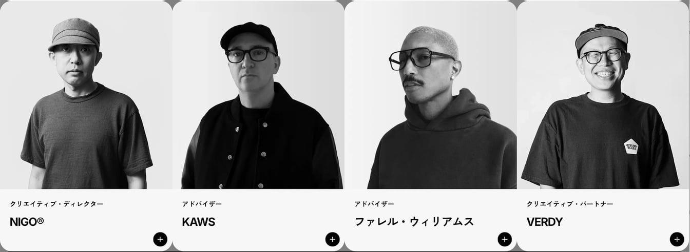 ──アドバイザーとしてファレル・ウィリアムスとカウズ、クリエイティブ・パートナーとしてVERDYといった、国際的に活躍されているクリエイターやアーティストを会社に迎えていますが、どういった意味を持ちますか?