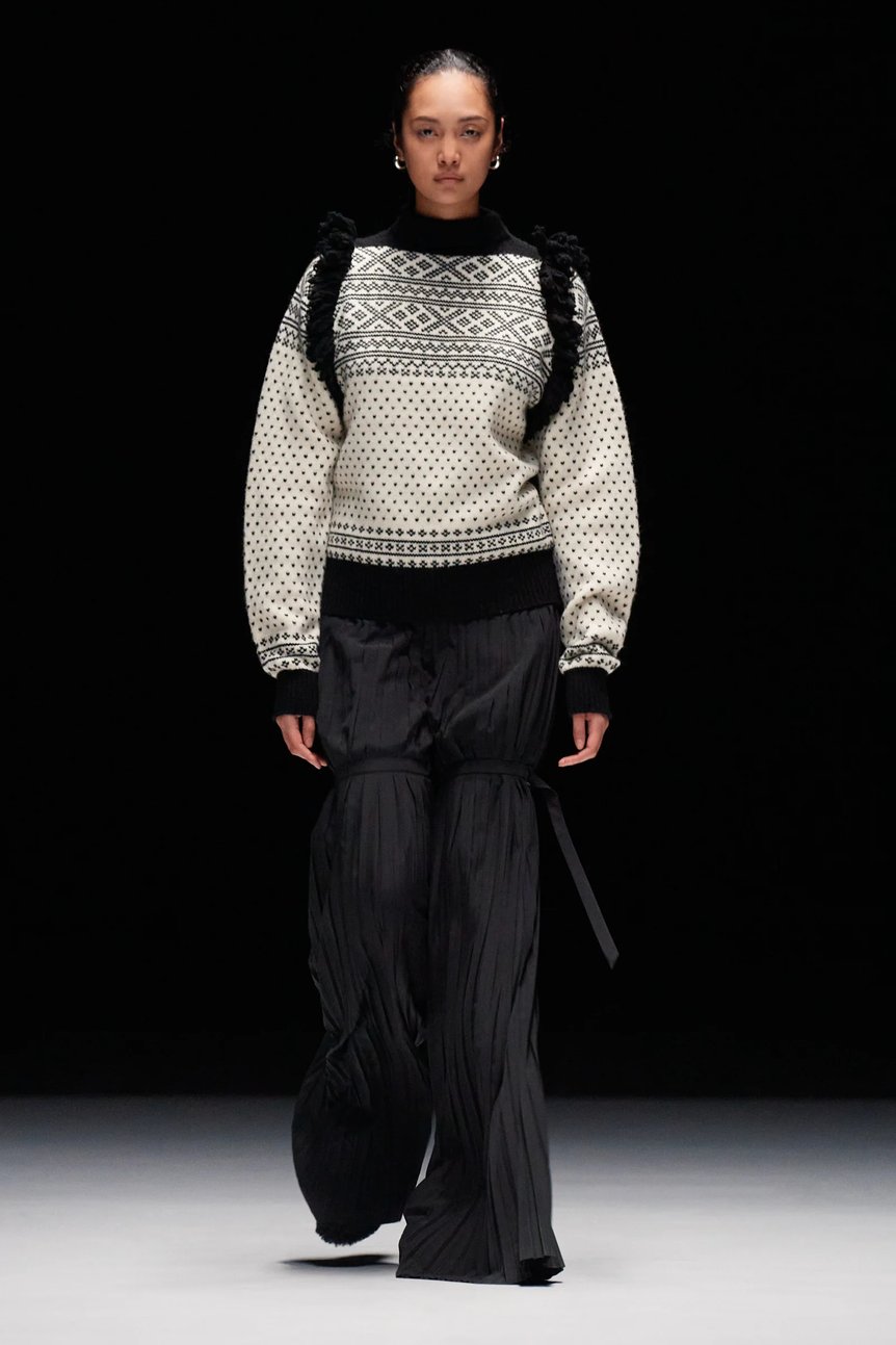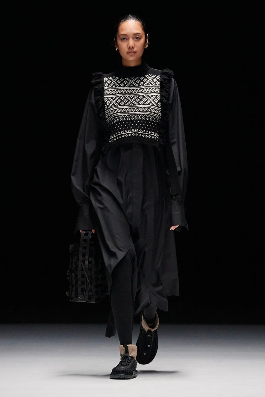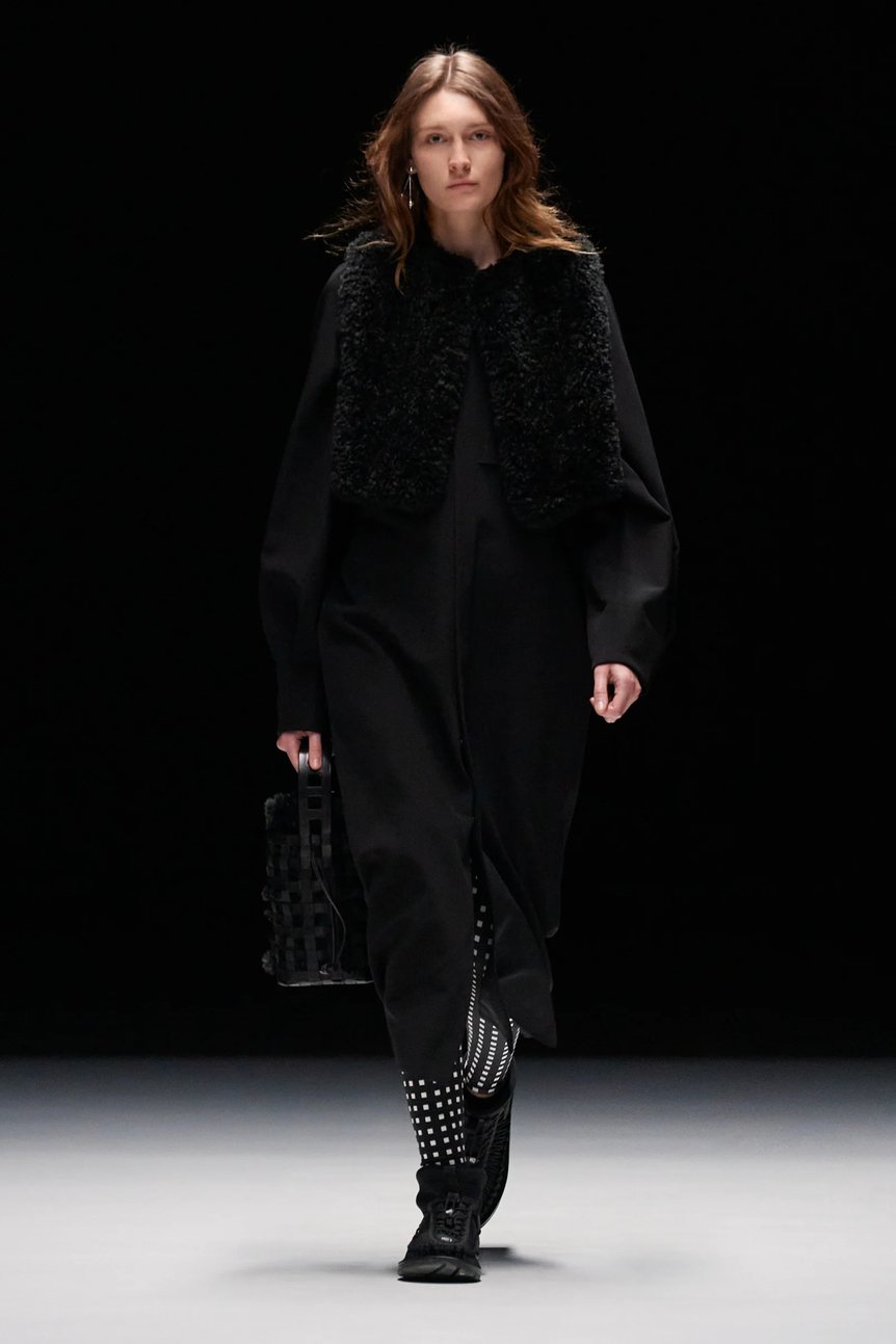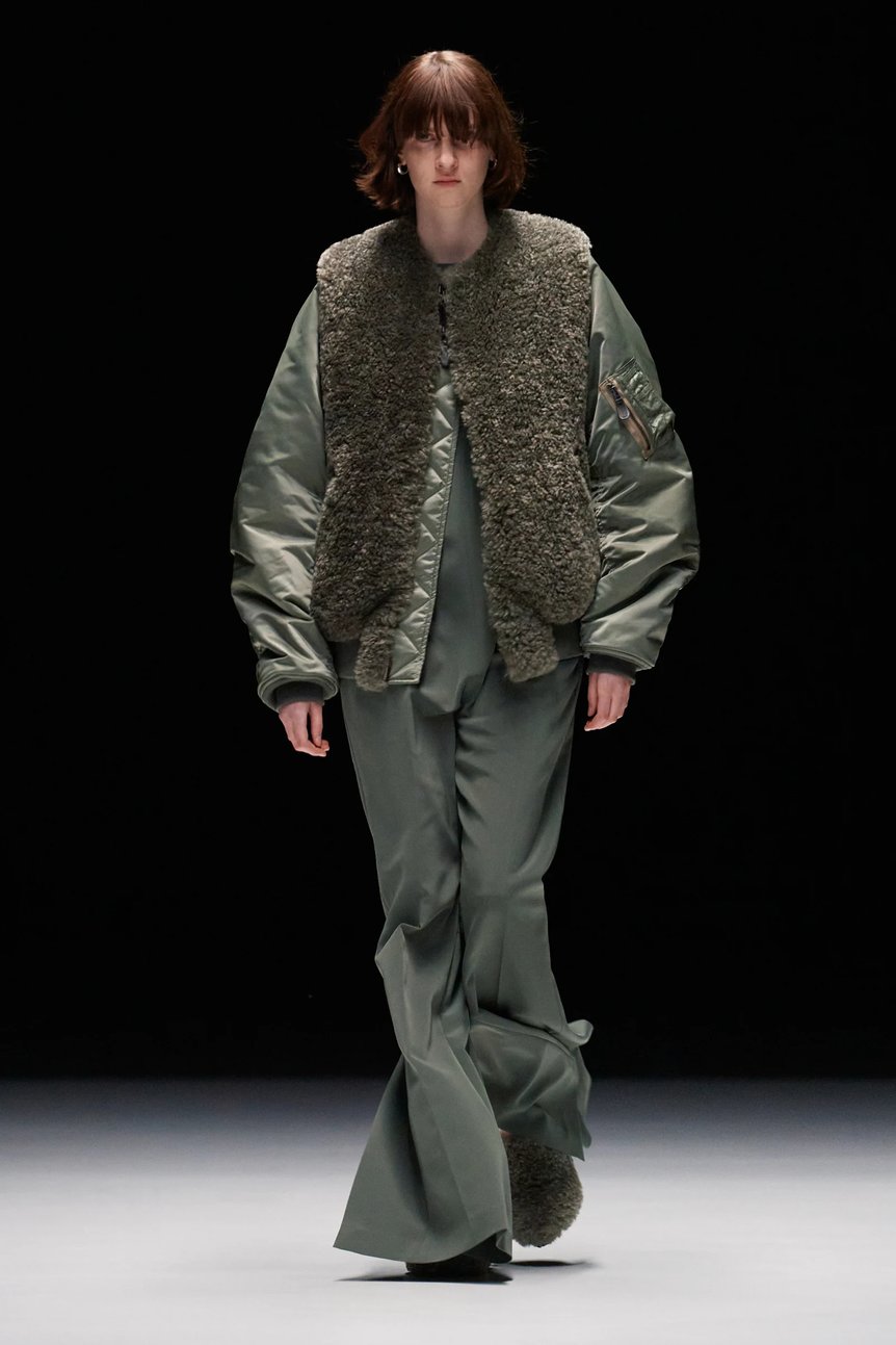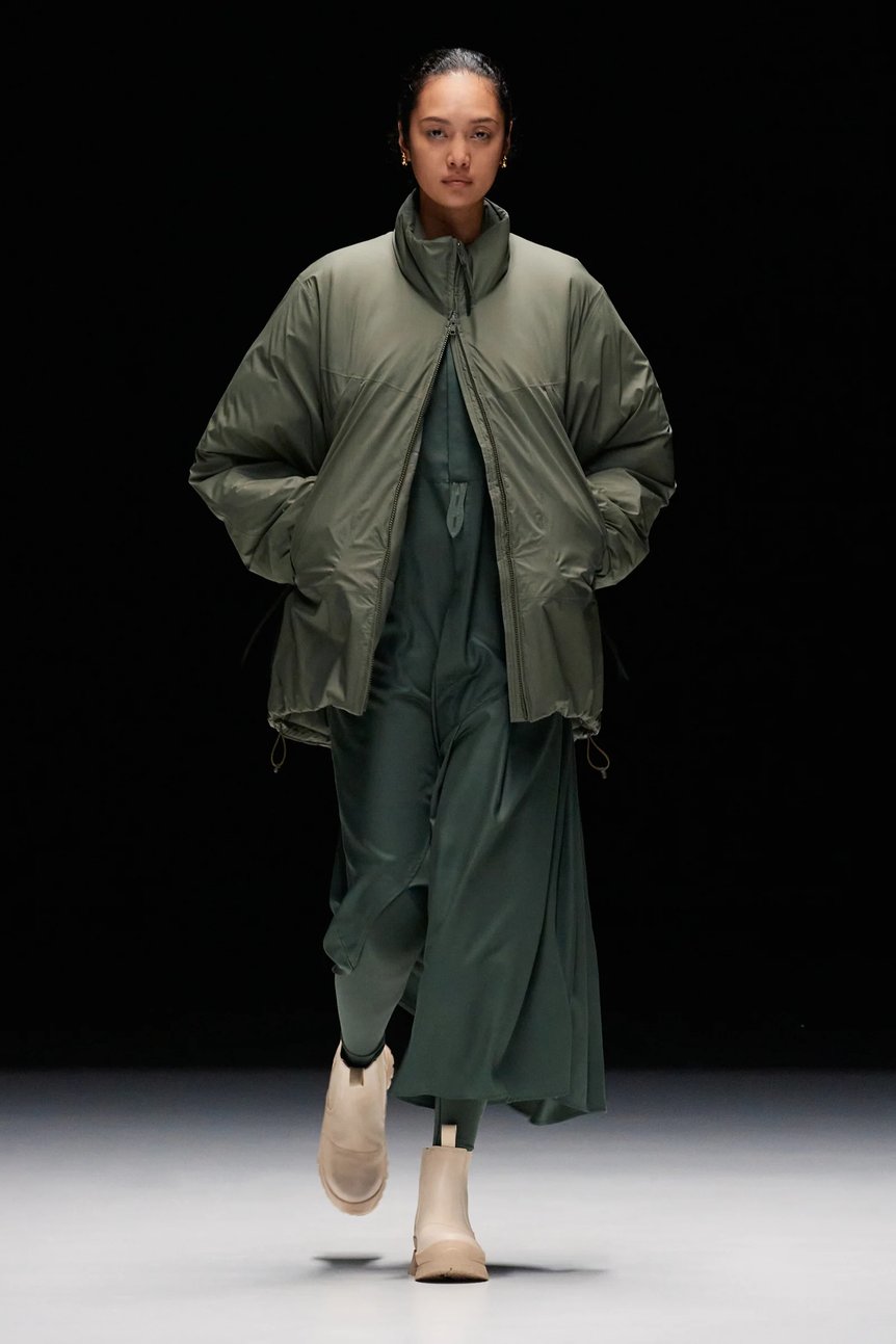 特徴的なのはシーズンを象徴する序盤のルックが、オールブラックのコーディネートで構成されていたことだ。テーラードジャケットの袖を断ち切ったようなベストや、ドレッシーなジャンプスーツなど、強みであるミリタリーやアウトドア要素を抑えたフォーマルなアイテムやコーディネートが、コレクションにフレッシュな印象を添える。