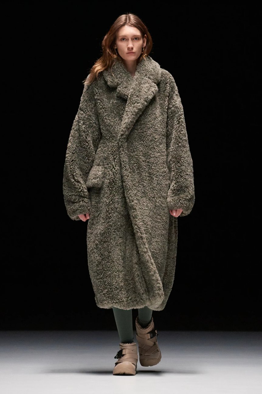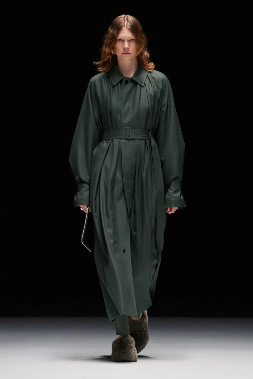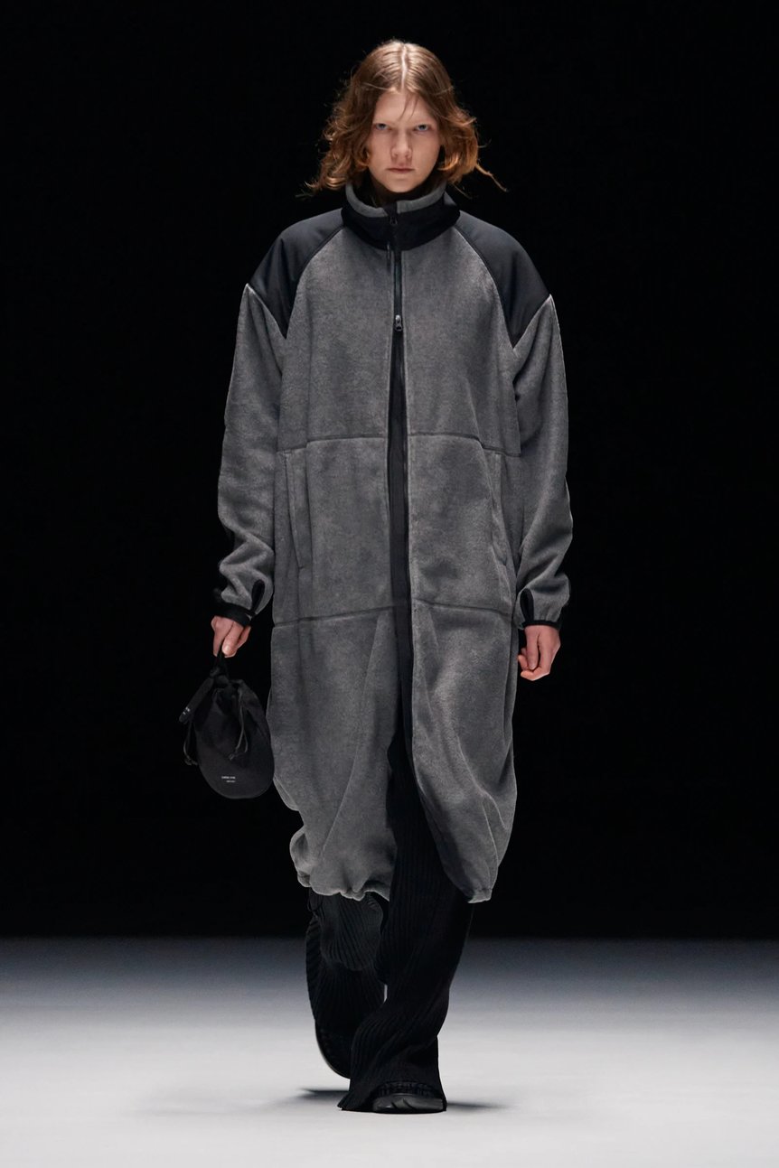 コレクションは、今シーズンもミリタリーウェアや古着のアイディアをハイク流に再構成。ボリュームのあるバリエーション豊富な袖のシルエットや、首の詰まったネックラインで作り出すロング&リーンなシルエットをベースに、定番アイテムやブランドのコード、素材を発展させた。