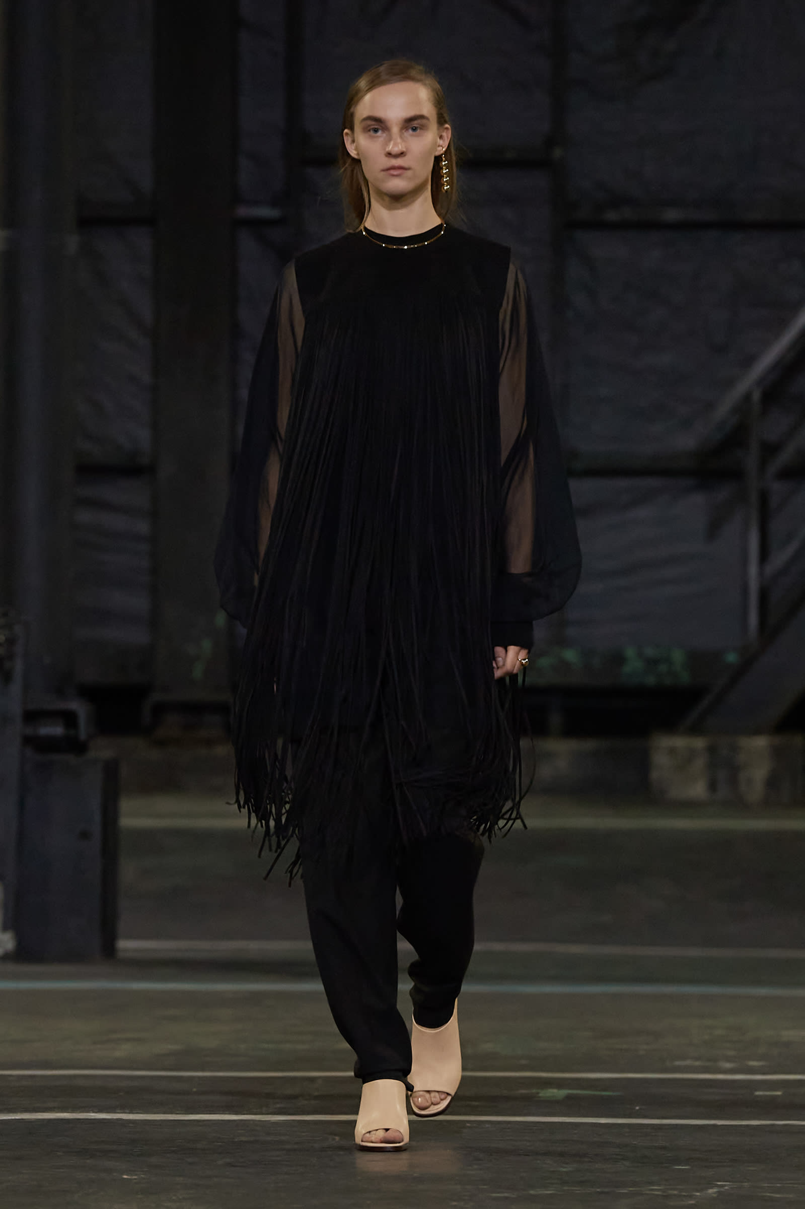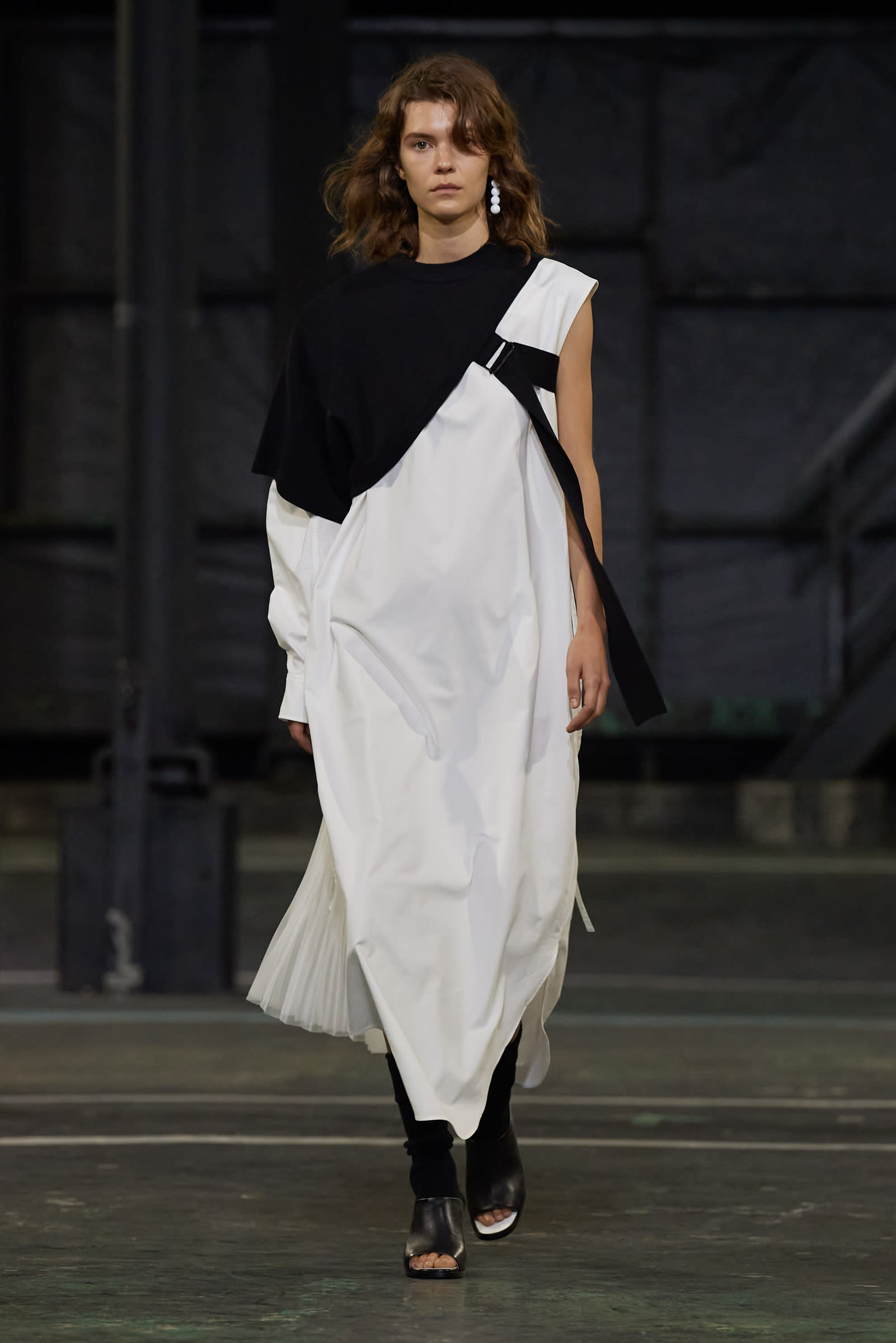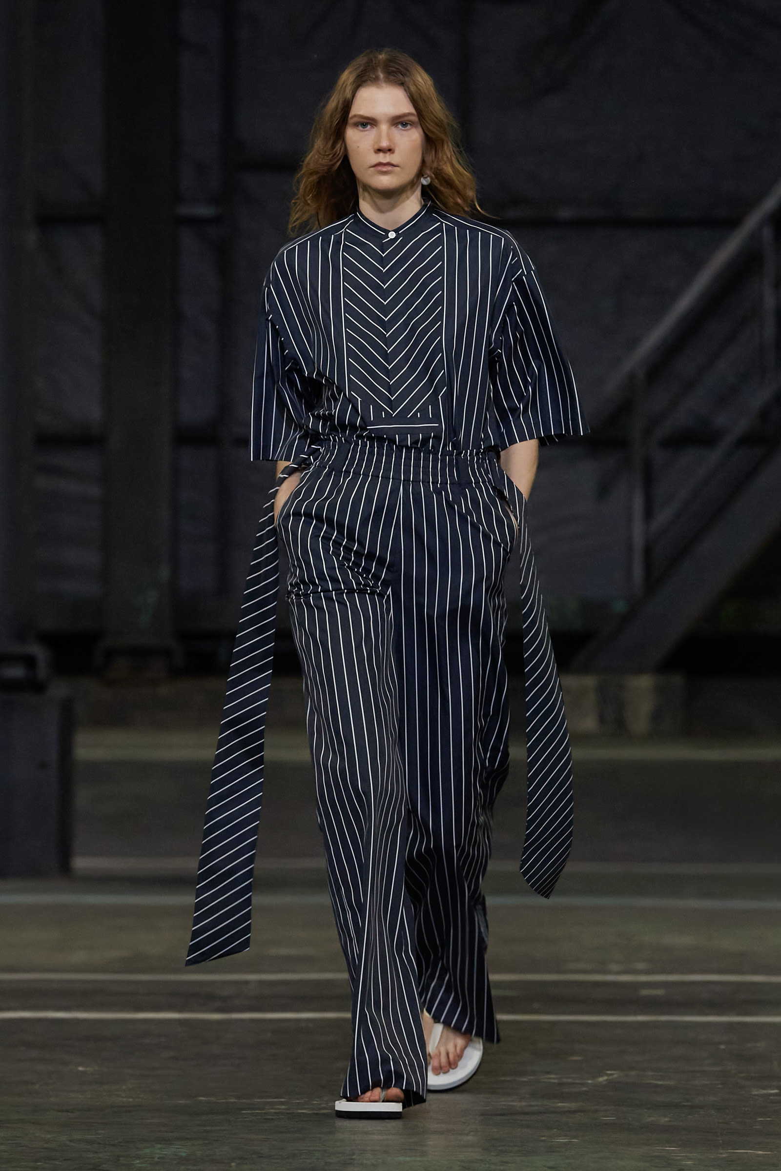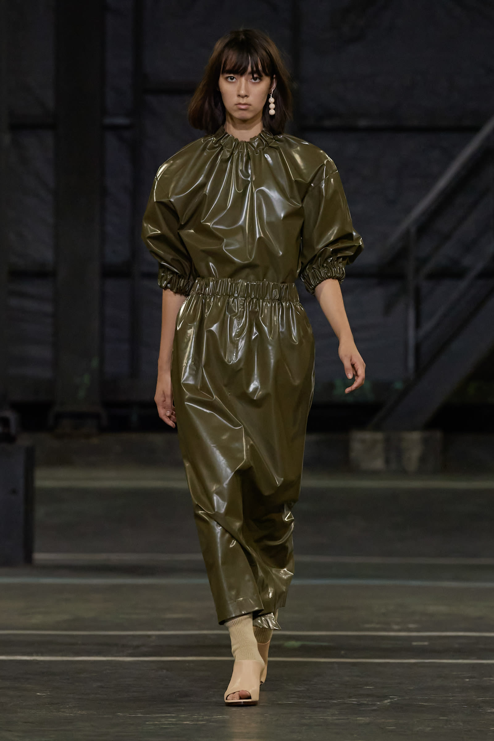 今シーズンも、王立海軍(ROYAL NAVY)のベンタイルスモックやアーマーベスト、メディカルガウン、ガンジーセーターといった、ミリタリーや古着に精通したデザイナーならではのインスピレーションソースを、独自の感性で再構築。テクニカルな機能素材やフェミニンなシフォン素材、鮮やかなブルーなどのカラーを差し込むことで、唯一無二のスタイルを作り上げた。