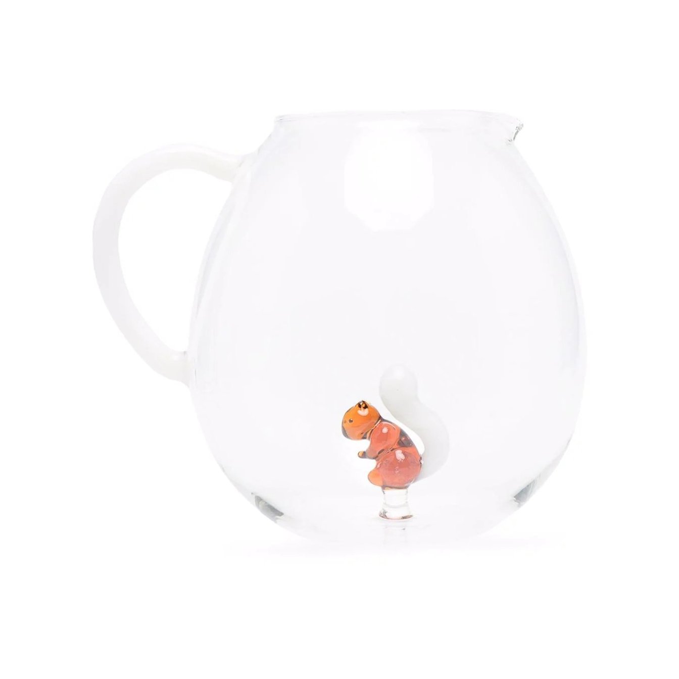 キュートなリスがアクセントになった、「イッケンドルフ ミラノ(ICHENDORF MILANO)」のガラスジャグ。アイスティーやフルーツウォーターに透ける、愛くるしい存在に癒されそう。コレクションしたくなるモチーフアイテムは、フラワーベースやグラスなどもラインナップしています。