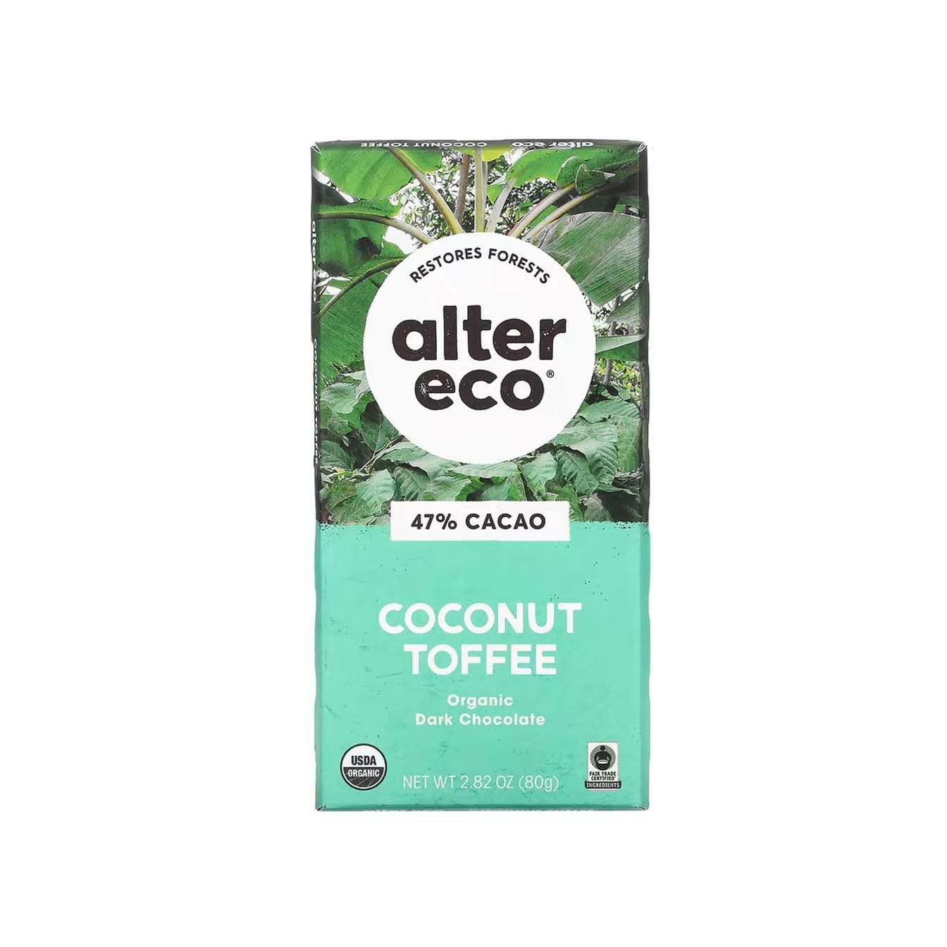 Alter Eco(アルターエコ), オーガニックチョコレートバー、ダーク塩ココナッツタフィー、カカオ47%、80g(2.82オンス) ¥496(関税・消費税込)