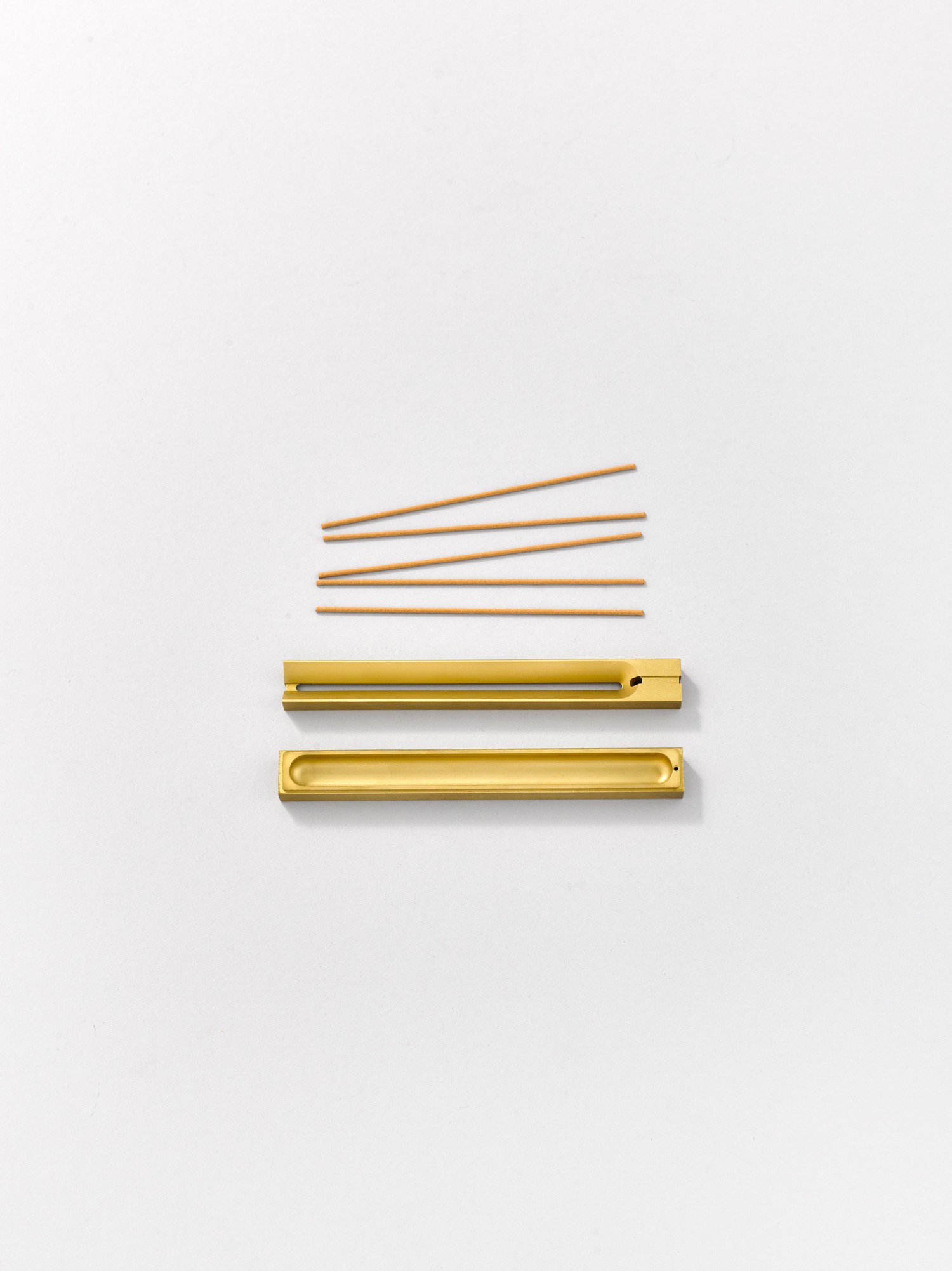 アリゾナ在住のデザインデュオ・ベッセル夫妻による、真鍮製のシンプルなスライド式香立て。2段に分かれていて、下の段に溜まった灰を取り外して捨てられる機能美が光るデザインです。ブランド名は日本語の「天然」に由来するなど、夫妻は日本の文化や美術にも造詣が深いといわれています。ブラックとゴールドの2色が揃います。