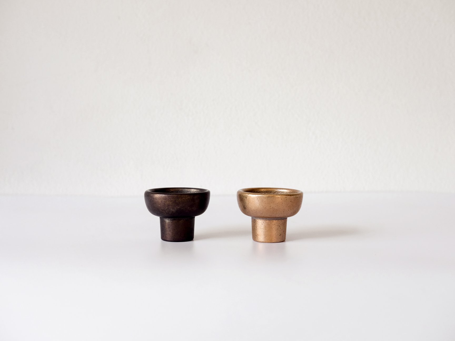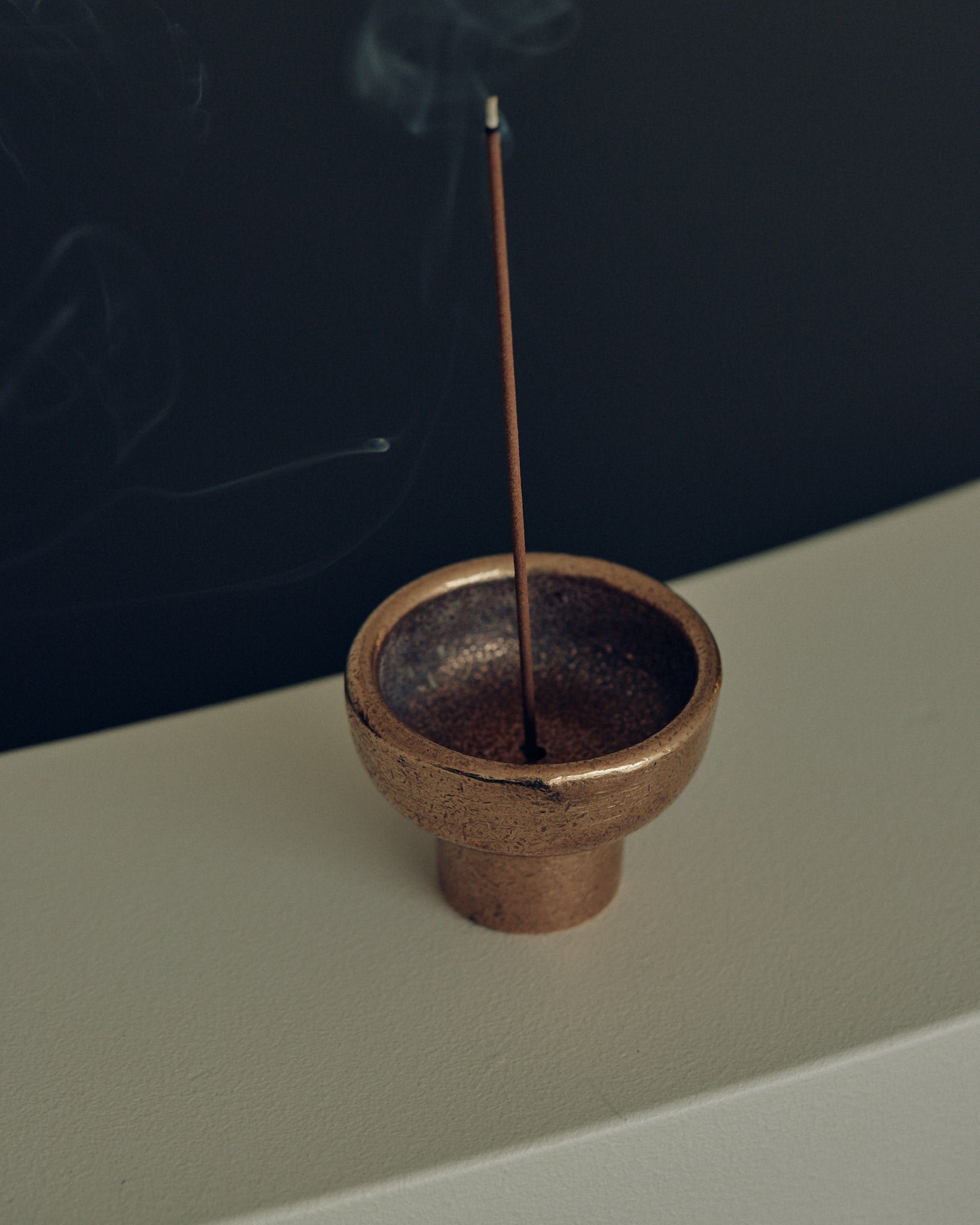 オーストラリア人デザイナーのヘンリー・ウィルソン(Henry Wilson)が手掛けたホルダー。イギリス人調香師リン・ハリス(Lyn Harris)が展開するフレグランスブランド「パフューマー H」のとのコラボレーションアイテムとして誕生しました。彫刻的な立体感のある造形と、ブロンズ製のずっしりとした重厚感が特徴。お香が垂直に立ち、深さのある皿で灰を余さず受け止める機能的なデザインです。プレーンと黒銅仕上げの2色展開。