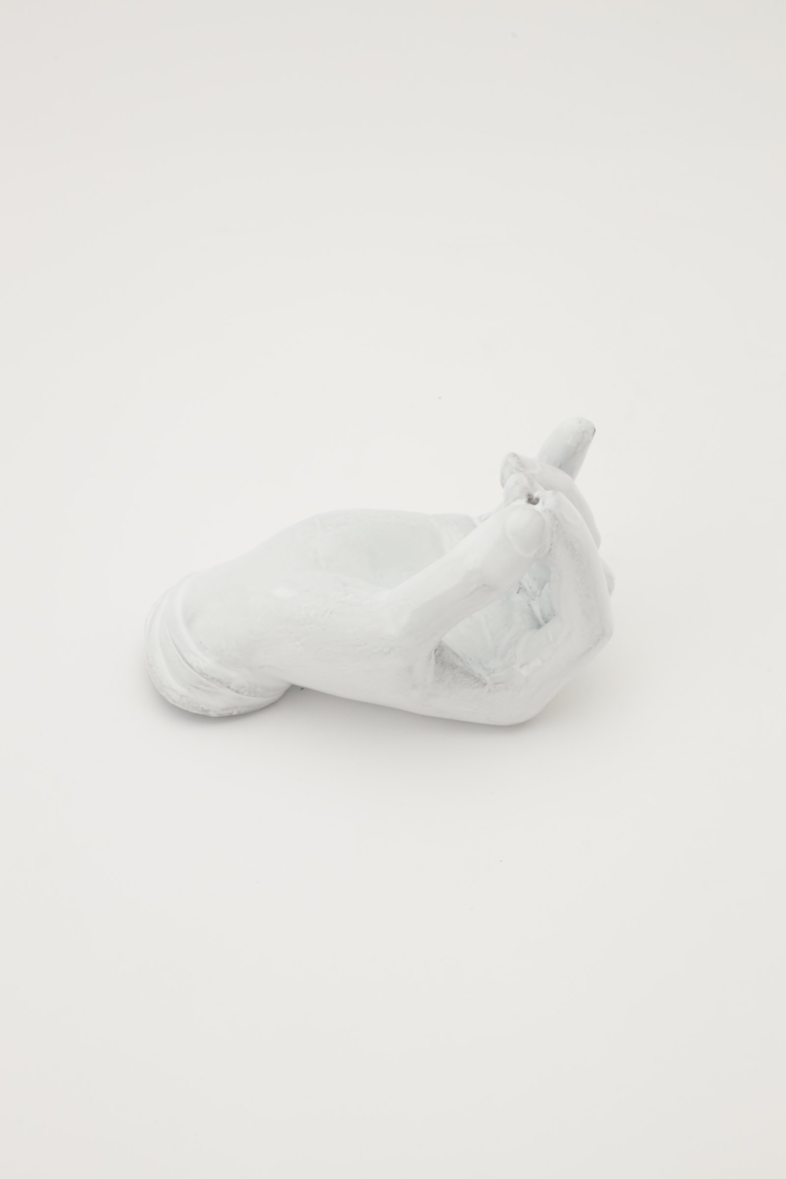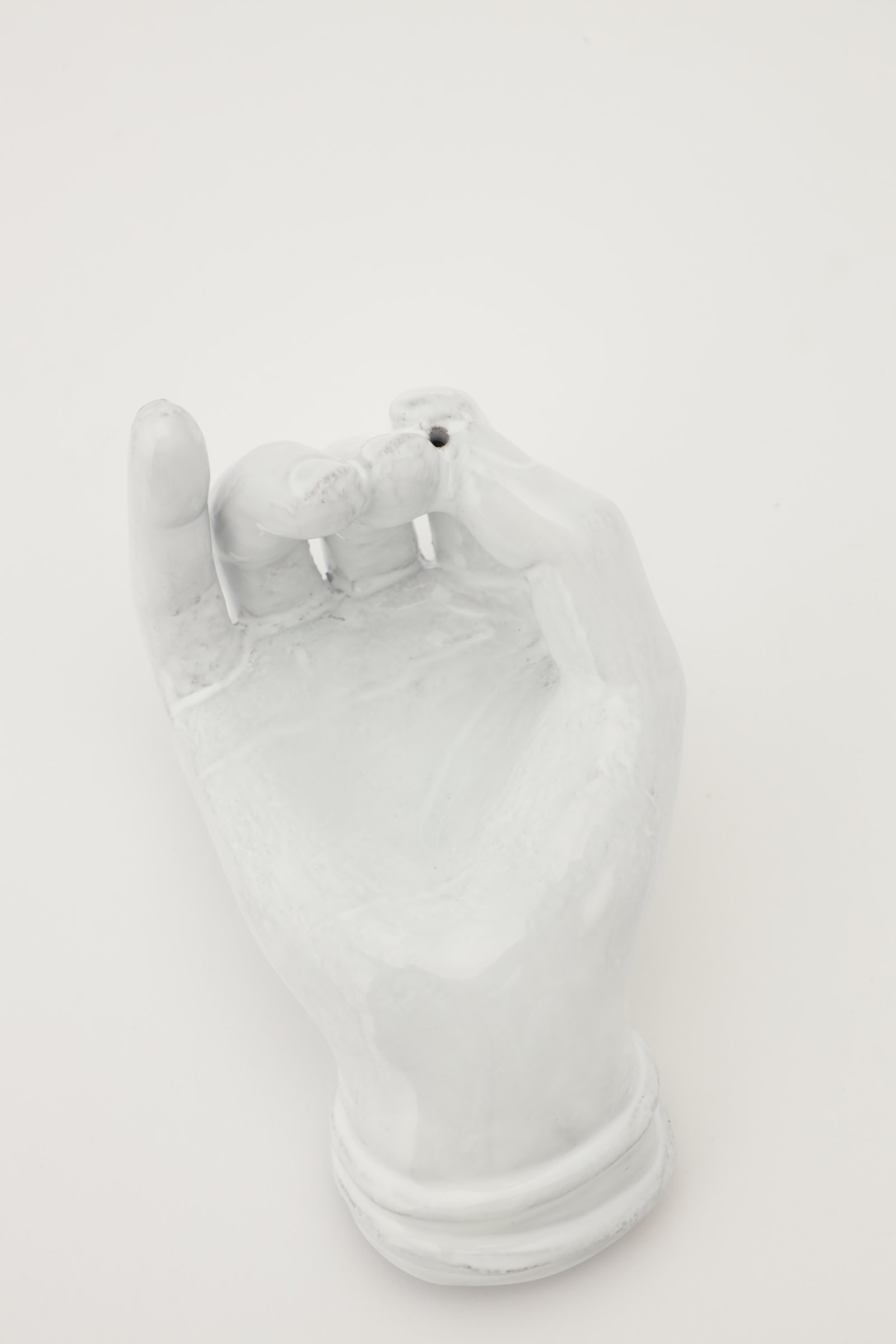 原料から製造まで全てをメイド・イン・パリにこだわった陶器メーカー。18世紀の古い型取りの技法で成形し、独特のグレイッシュな白の釉薬で仕上げています。これは彫刻家セレナ・キャロンヌ(Serena Carone)とのコラボレーションモデル。その名の通りセレナ本人の手を模しており、線香を指先で挟むというユニークなデザインです。