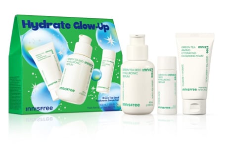 チェジュ島にある自社農園で栽培された美容茶葉とカプセル化したヒアルロン酸を配合した「グリーンティーシード ヒアルロン セラム 」のホリデー限定コフレがお目見え。たっぷり使える大容量サイズと、持ち運びに便利なトラベルサイズに、肌をすっきりと洗い上げる洗顔料がセットに。