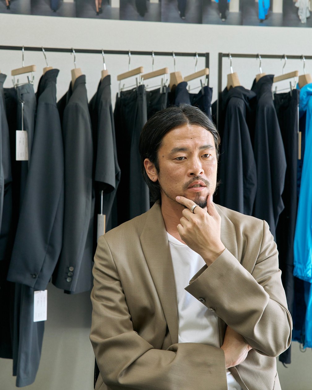 小林祐(以下、小林):僕は大学までずっとサッカーをやっていたので、安倍とは逆に私服を着ることがほぼなかったです。ファッションに興味を持ったのは、大学に入ってから。当時は感覚的にカッコいいと思う服を着ていたので、特定の好きなブランドというのはなかったんですが、ヨウジヤマモトを知ってからは他のブランドと異なる感性に惹かれ、注目して見るようになりました。でも、大学生のころはファッションを仕事にしようとはまったく思っていなくて。教員になることも視野に保健体育の教員免許を取っていたんですよ。それに当時は何よりも、プロのサッカー選手として食べていきたい気持ちが強かったです。
