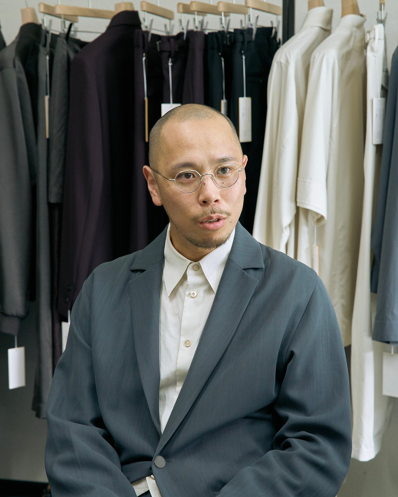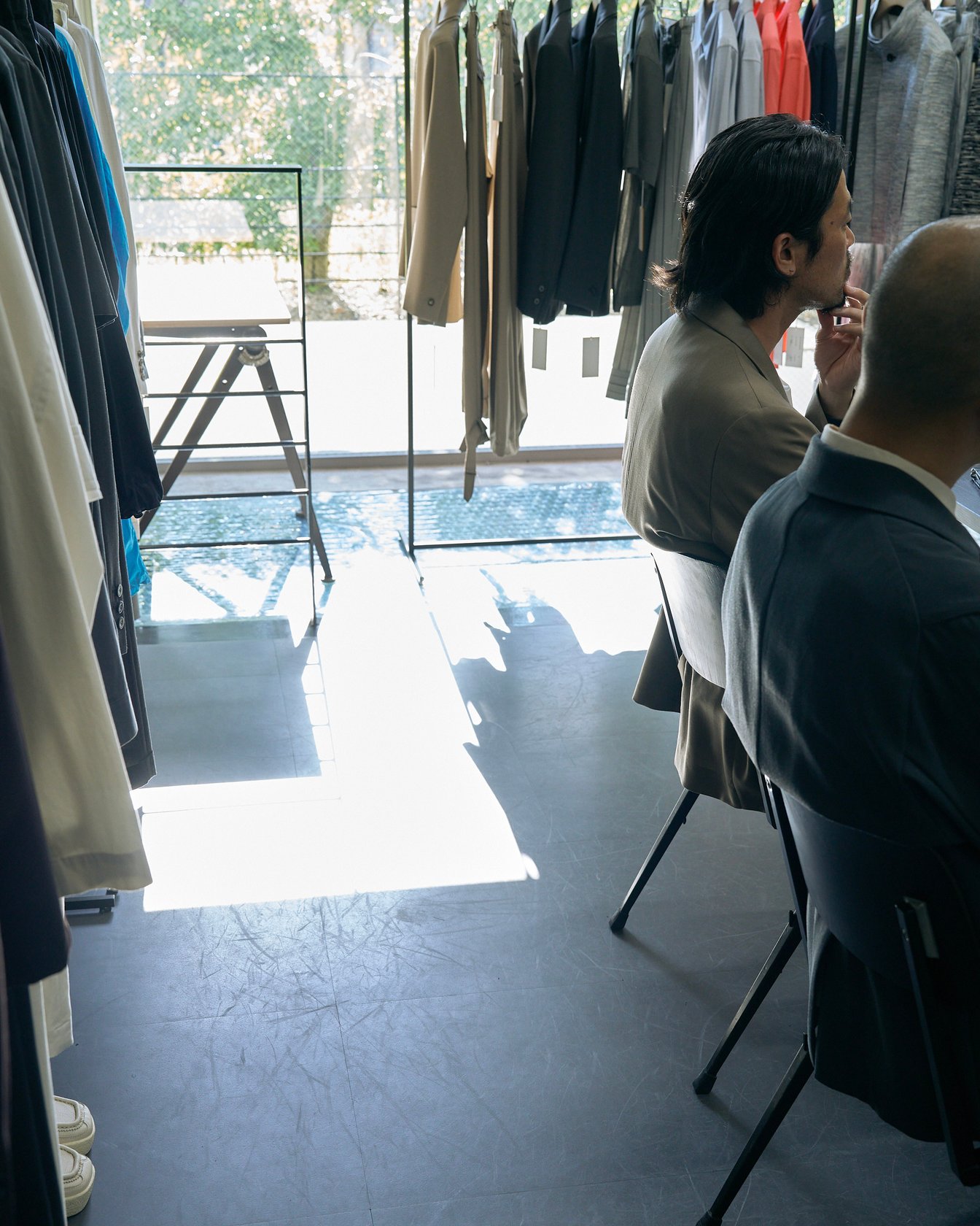 小林祐(以下、小林):僕は大学までずっとサッカーをやっていたので、安倍とは逆に私服を着ることがほぼなかったです。ファッションに興味を持ったのは、大学に入ってから。当時は感覚的にカッコいいと思う服を着ていたので、特定の好きなブランドというのはなかったんですが、ヨウジヤマモトを知ってからは他のブランドと異なる感性に惹かれ、注目して見るようになりました。でも、大学生のころはファッションを仕事にしようとはまったく思っていなくて。教員になることも視野に保健体育の教員免許を取っていたんですよ。それに当時は何よりも、プロのサッカー選手として食べていきたい気持ちが強かったです。