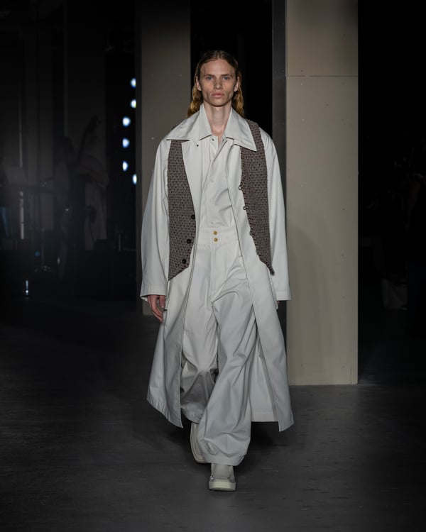 小林:イレニサでは、フードパーカを定番的な形として作り続けています。今までは丈が少し短めのブルゾンタイプでしたが、2025年春夏コレクションからウィメンズを始めるということで、軽めのコートを作りたいと考えました。イレニサにはウールのイメージが強いですが、カジュアルでスポーティなアイテムでも、ドレスの要素を組み合わせることでイレニサらしい見え方にできるのではないかと。物理的な軽さだけでなく、後ろ身頃にモッズコートのカッティングを加えることで軽さを出しています。