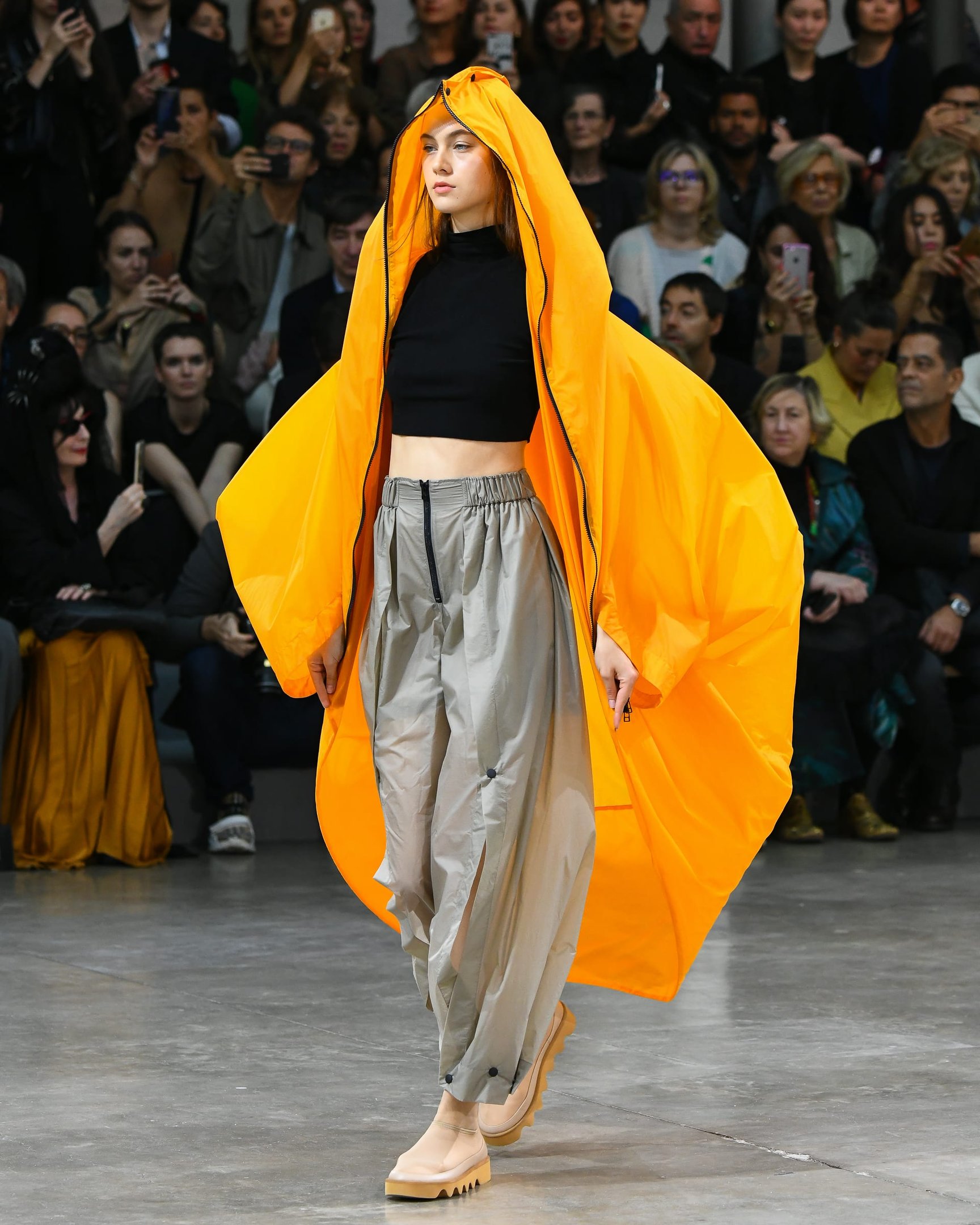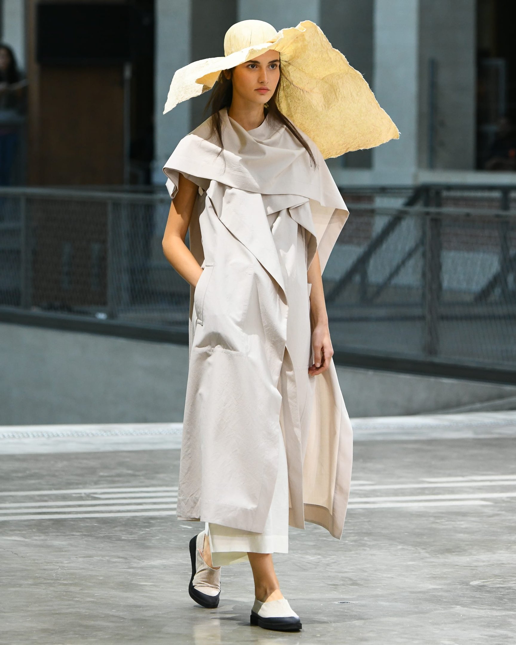 <p class="text-small">パリで発表されたショーで最初に登場したシリーズ。四角い一枚の布から作られている。</p>
