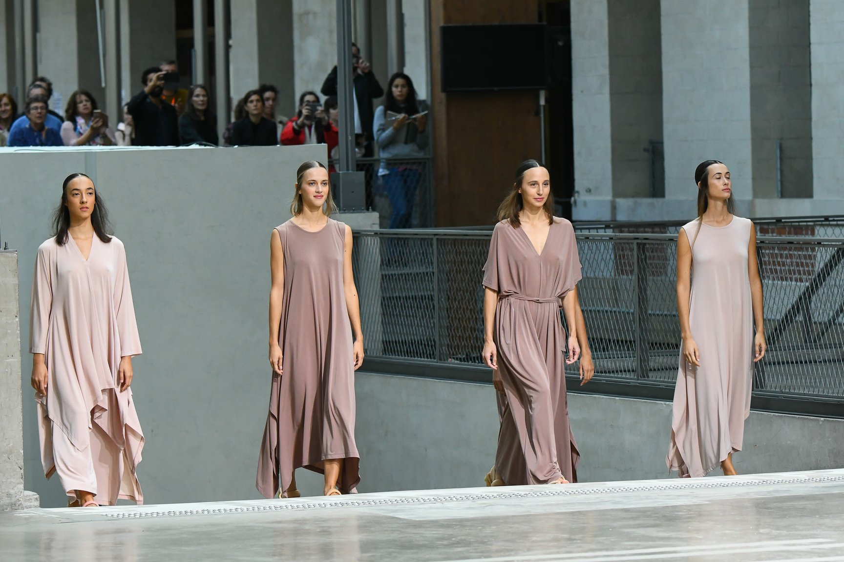 <p class="text-small">ヌードトーンのシリーズ。ショーではしなやかなダンスと共に披露された。</p>