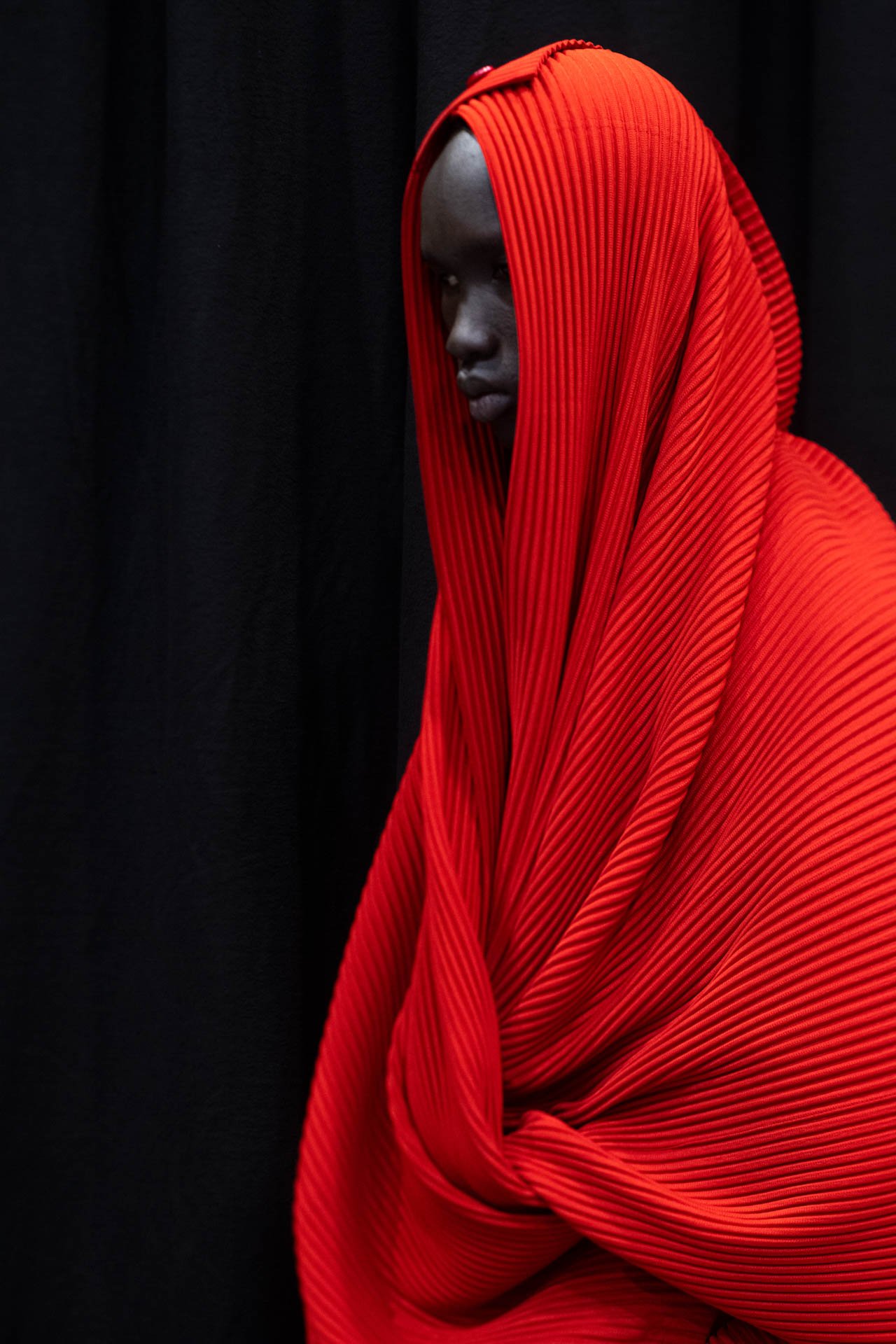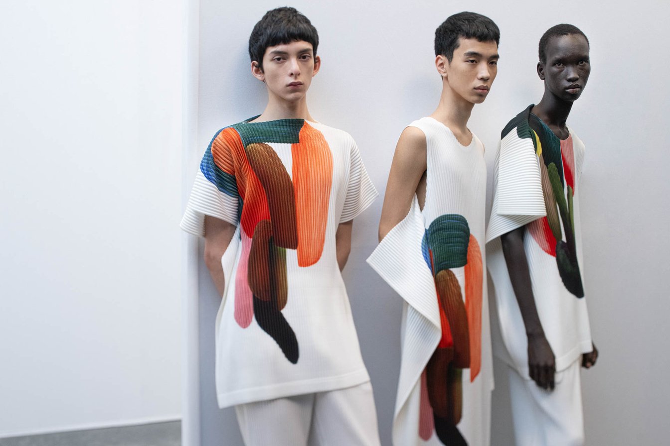 平面を美しいフォルムへと変化させるテクニックや、プリーツを多様したクリエイションは「イッセイ ミヤケ」ならでは。身体の動きに合わせて軽やかに変化する生地とアートの要素が、美しいハーモニーを生み出し、会場に集まったゲストたちの心を高揚させた。
