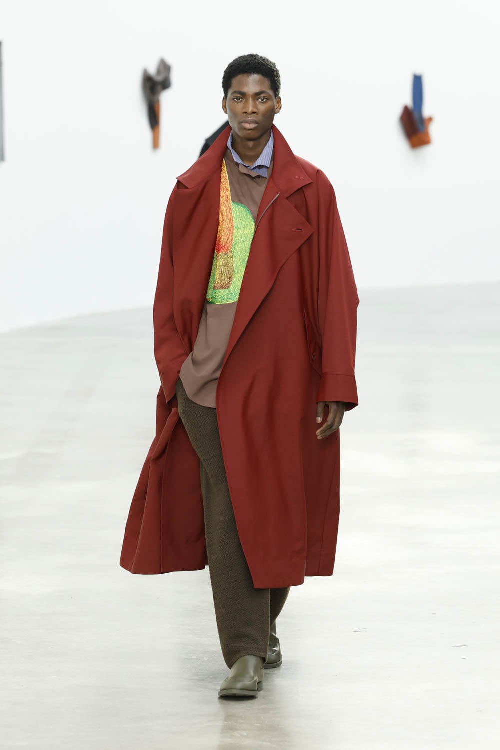 また、無数の線でまんべんなく埋め尽くされたブルレックの代表作「ALL OVER」を定番のプリーツ素材に掛け合わせたシリーズや、ボールペンで描かれた「Stylo-Bille」を刺繍で表現したシャツなども登場。クリーンでありながらも激しいエネルギーを内に秘めたような服は、まさにアートへの没入体験を可能にしている。