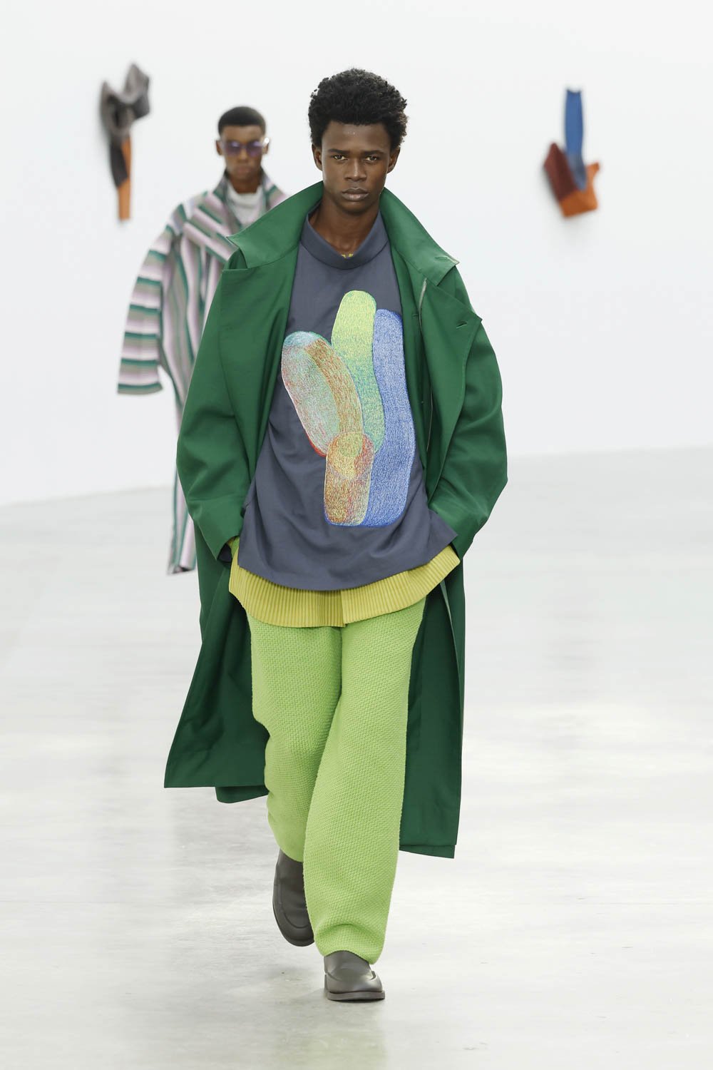 今シーズンは、ブルレックの作品群を服に落とし込んだだけでなく「多彩で豊かな素材集として自由に扱い、作品の世界へ飛び込んで遊ぶように創作した」とブランドのデザインチームは説明する。