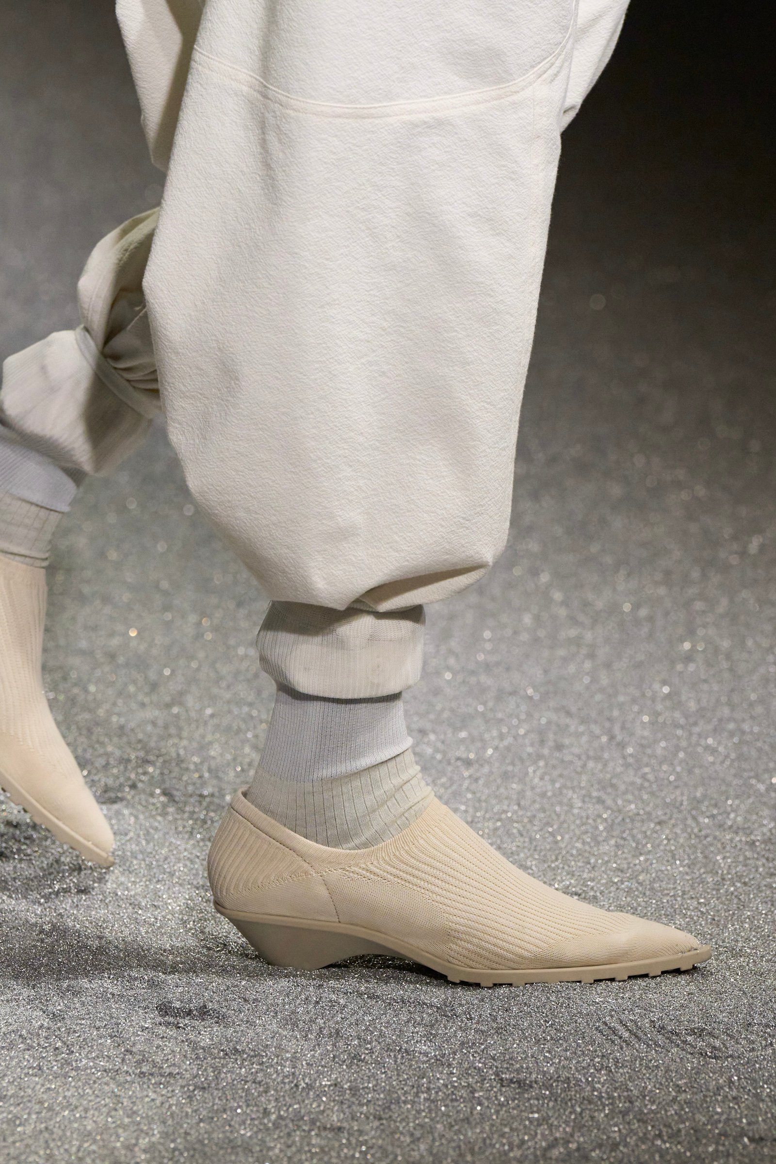 また、シューズでは「カンペール(CAMPER)」との協業による新作も登場。ストレッチニットのアッパーが足を包み込むような構造で、「靴下を履くような靴」という発想から生まれたヒールシューズを提案した。