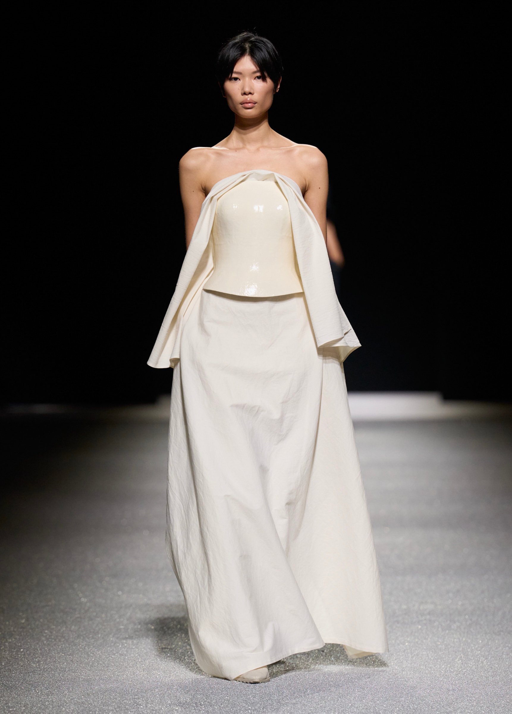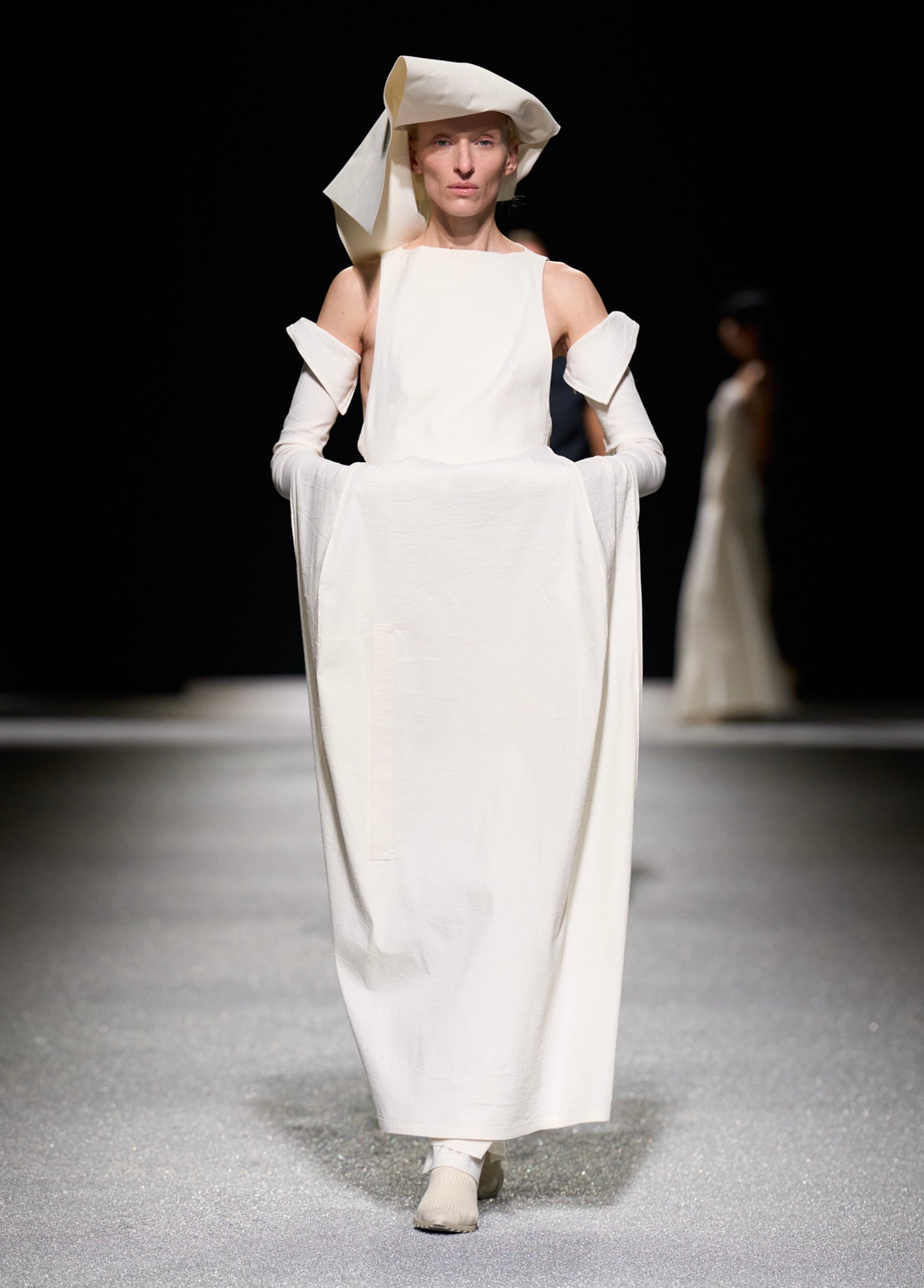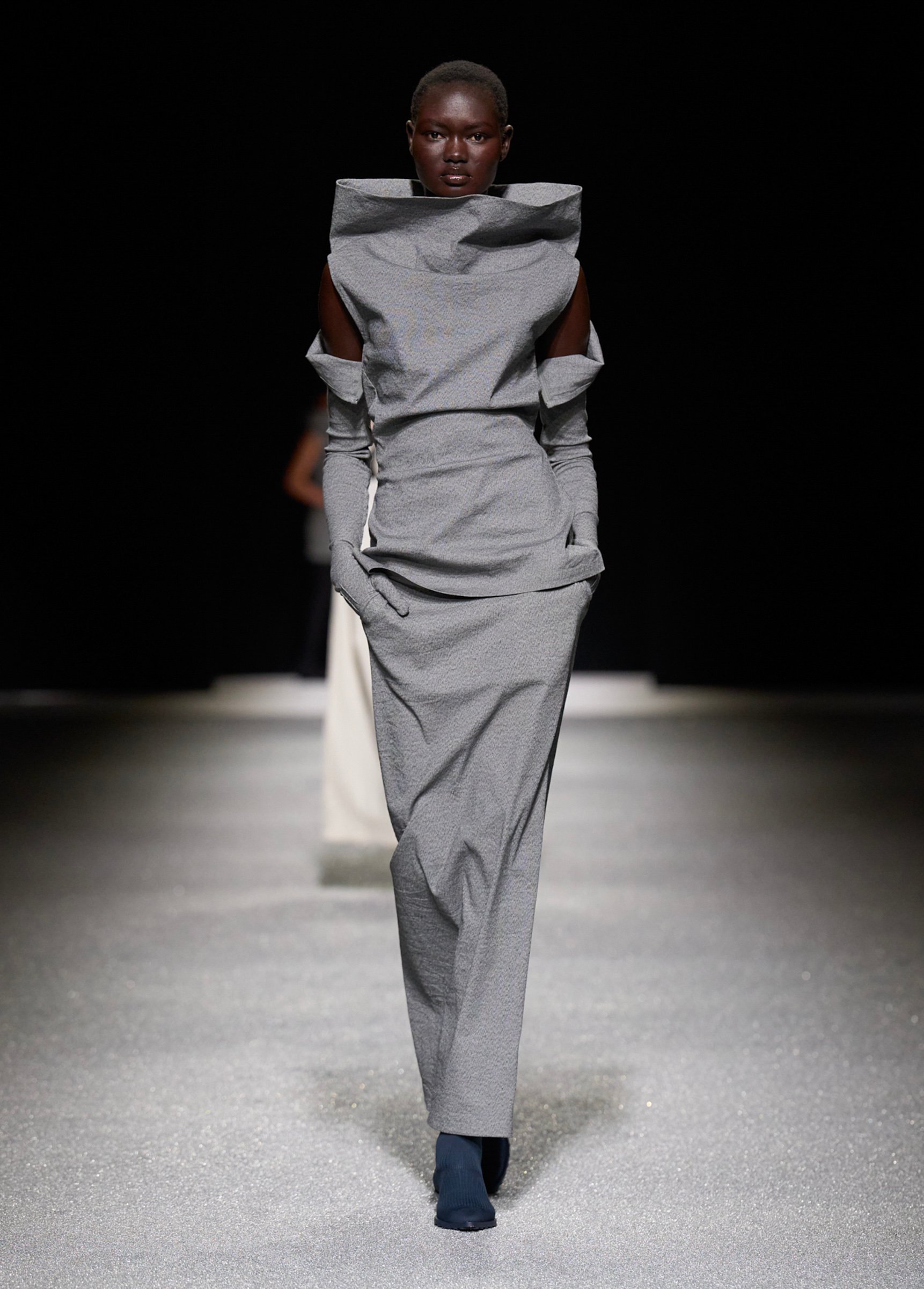素材と身体の関係を見つめ直す試みが提示された今シーズン。近藤は「素材に優劣はない。アルミニウムでも紙でも、その価値を見つければクリエイティブに使うことができる」と語る。