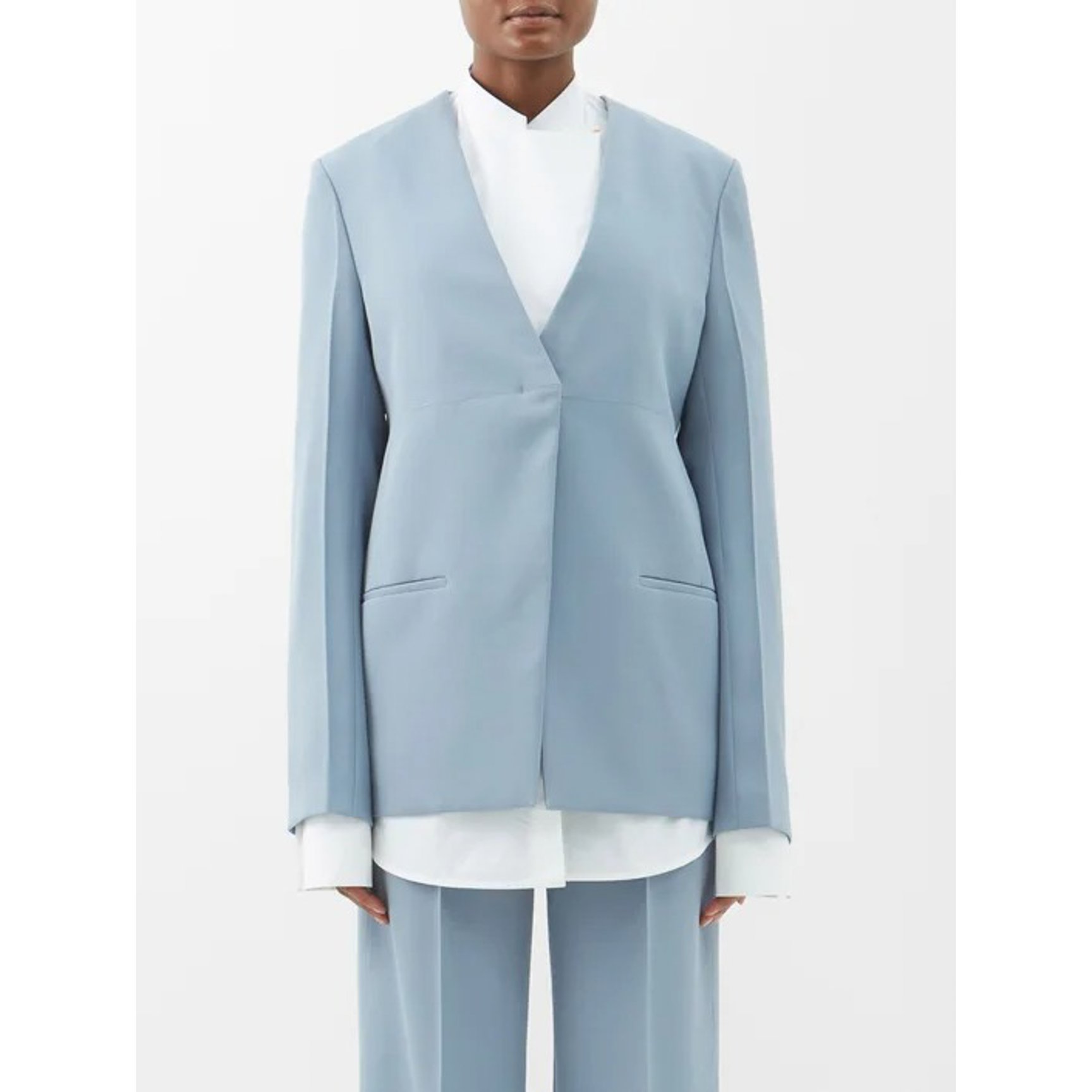 JIL SANDER ノーカラー ウールジャケット¥293,681(関税・消費税込)