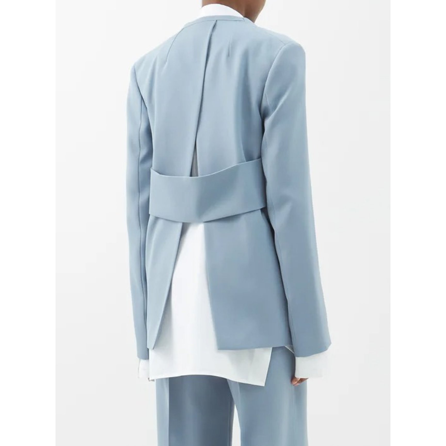 ノーカラーでよりデイリーに合わせやすい「ジル サンダー(JIL SANDER)」のジャケット。バックに深めのスリットと太めのベルトを施しており、動きやすい上に後ろ姿までスタイリッシュに演出してくれます。