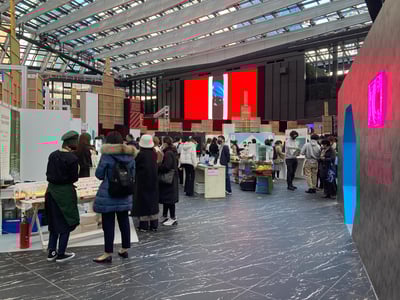 ポップアップショップの動画です。日本の方からすると、「え、どの部分?」と思うかもしれません。ここで私が言っているポップアップショップは、ブランドが単独でエスカレーター横でやるような小さい規模のものではありません。220社のブランドが集まる(!)大型のポップアップショップイベントの話なのです。