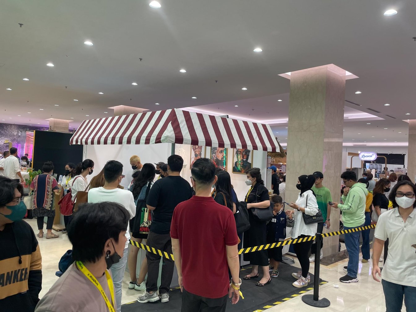 11月3日から6日まで開催された今回は、3年ぶりに200社が出展するコロナ前と同規模の開催とあって大盛況でした。出展者の半分は飲食で、もう半分はアパレルと雑貨、コスメなどです。アパレルの出展者は多く、近年の日本の厳しいアパレル市況からは考えられないほどインドネシアのアパレル小売は盛況です。コロナ前に開催された2019年10月の会では、来場者数は7万9500人だったそうです。今回の来場者数は6万1200人で、コロナ禍であることを感じないほどの混雑でした。