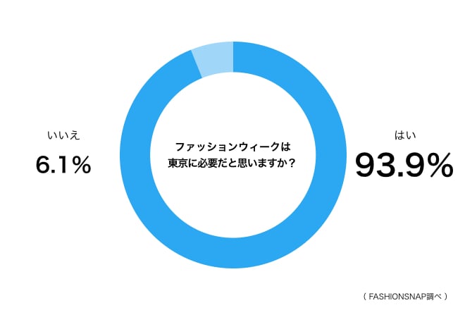 9割強が「はい」という回答でした。その中には「ファッション産業の振興のため」「アジアの軸であるべき」といった義務としての開催意義や、「今後に期待したい」「必要であってほしい」といった期待を含んだ回答が含まれていました。「いいえ」の回答の理由としては「日本のブランドが世界に羽ばたく企画があれば、ファッションウィークという形にこだわらない」といった意見が寄せられました。