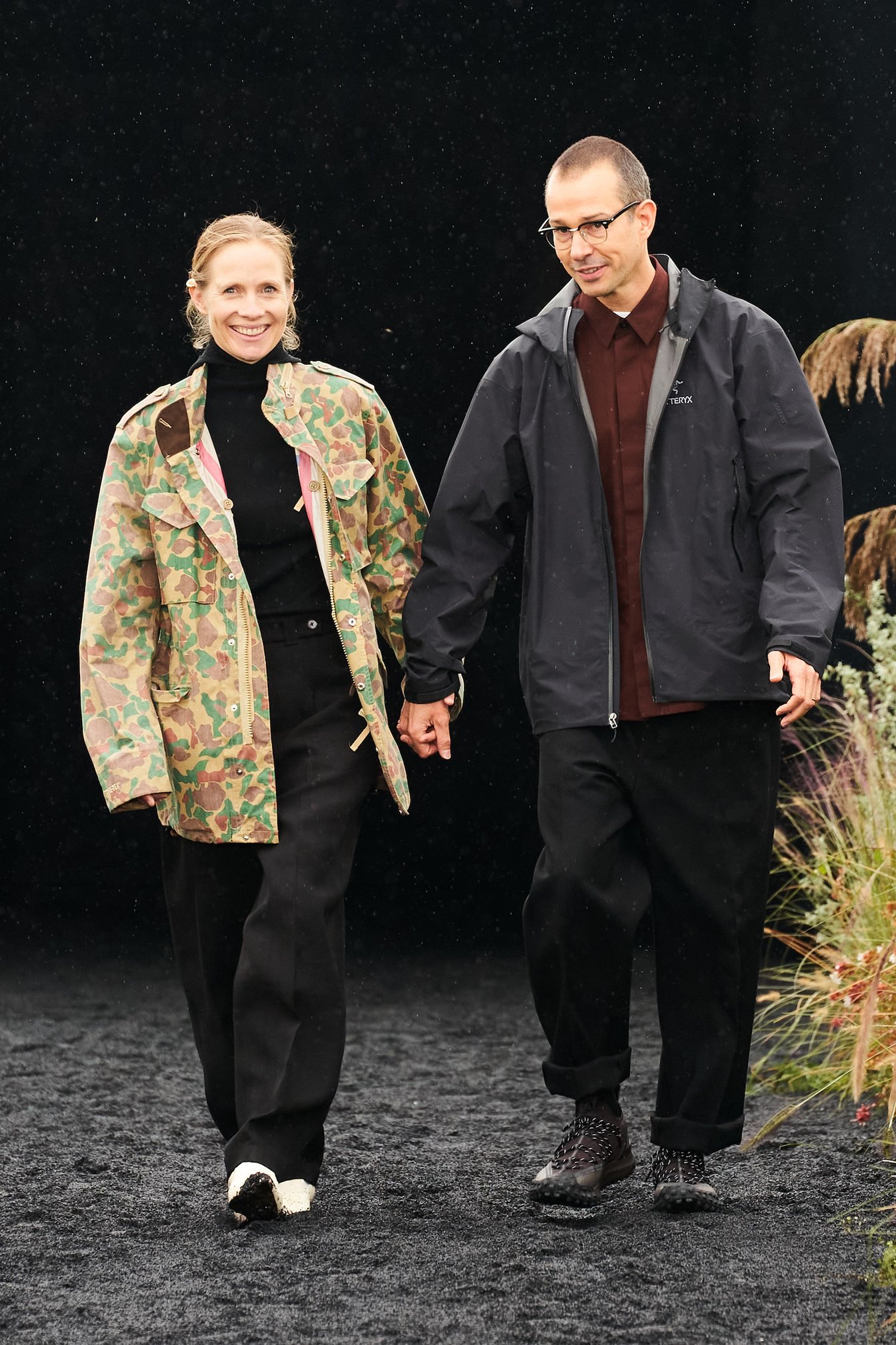 「ジル サンダー(JIL SANDER)」は9月24日(現地時間)、ミラノ・ファッション・ウィーク内でメンズとウィメンズ合同でのファッションショーを開催した。合同で発表するのは、クリエイティブ・ディレクターのルーシー(Lucie)&ルーク・メイヤー(Luke Meier)のデビュー直後、2018年春夏の5年ぶりとなる。当日はあいにくの雨。ショー会場は、緑の生い茂る公園の中で、屋根がない仮設の建物に雨が降り注いた。しかし、そんな雨天も自然の演出に変え、モデルたちは傘をさしてランウェイを歩く。植栽を背景に、情緒を感じる美しいショーを披露した。