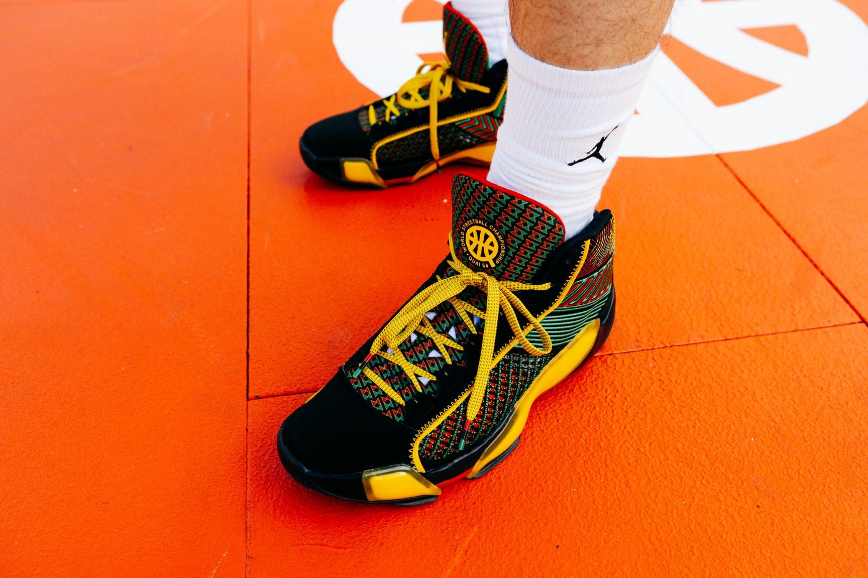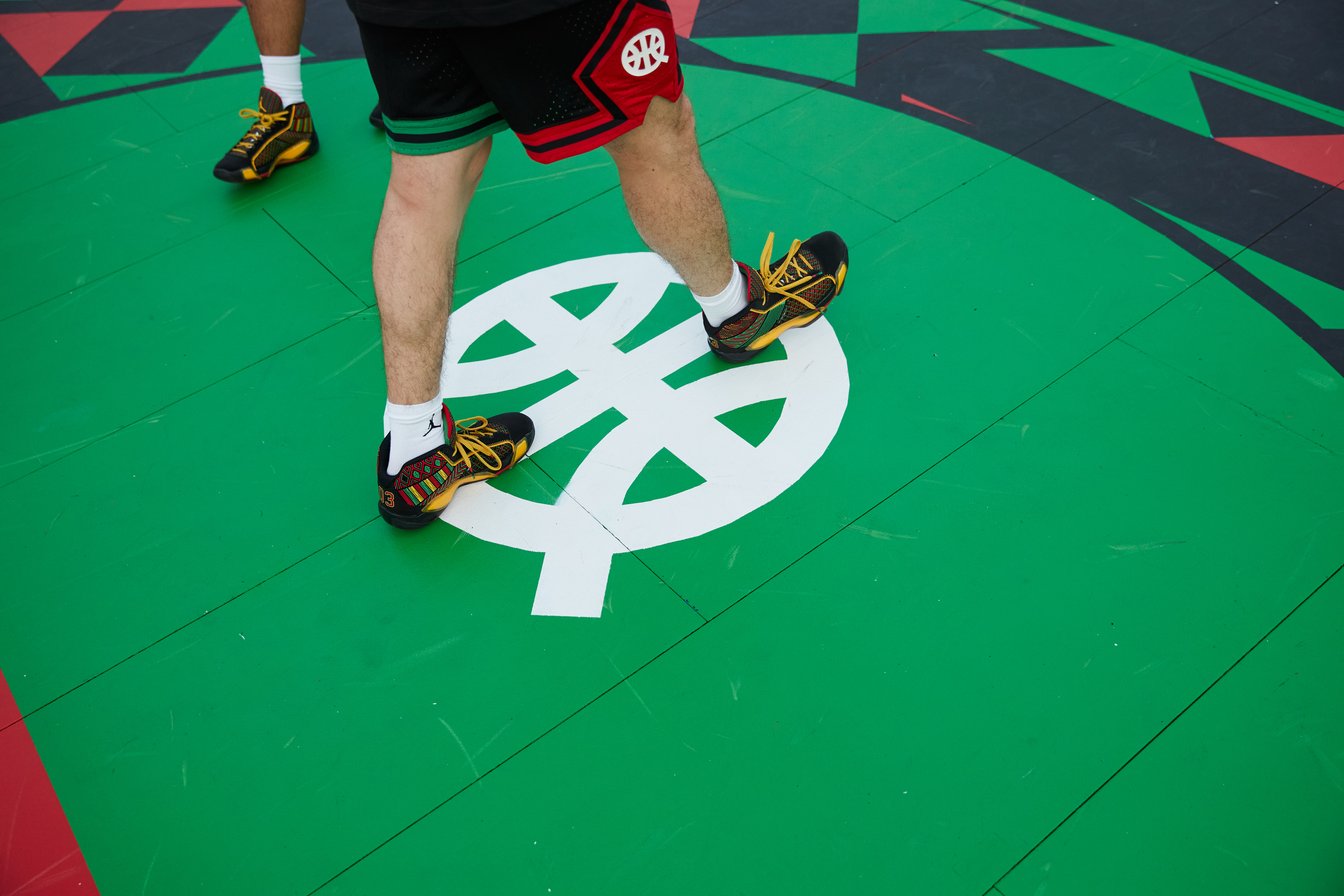 イギリスやイタリア、アメリカ、中国など世界各国のイベント招待者とみんなでバスケをプレイ。全員初対面ですが、同じ服と靴を着用しているとチームみたいで親近感が湧きます。