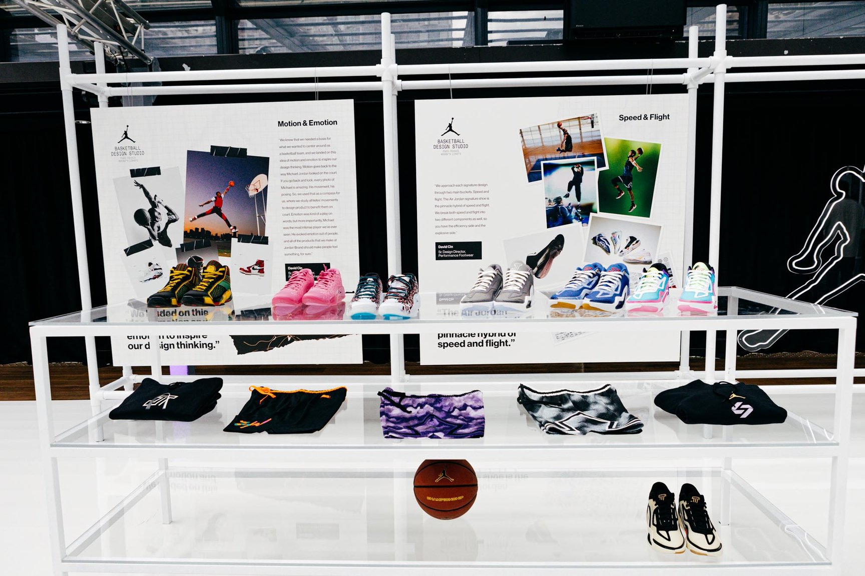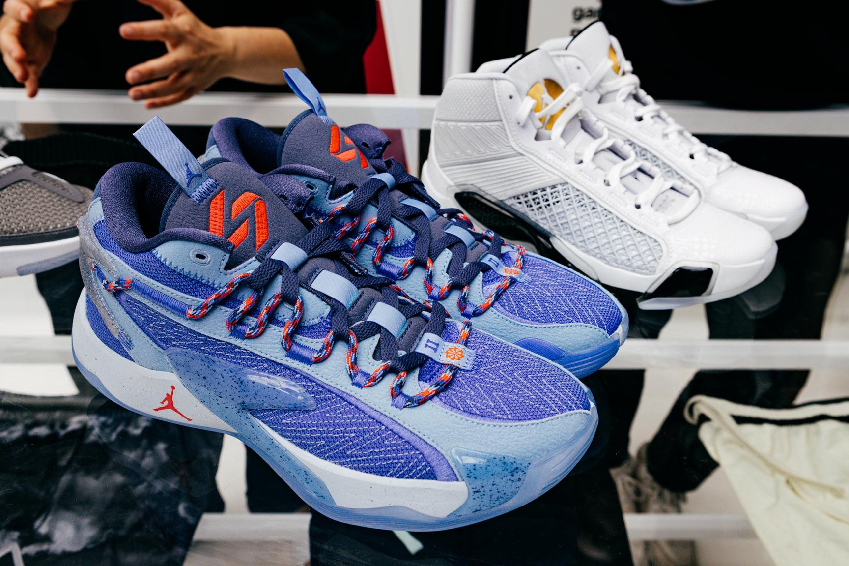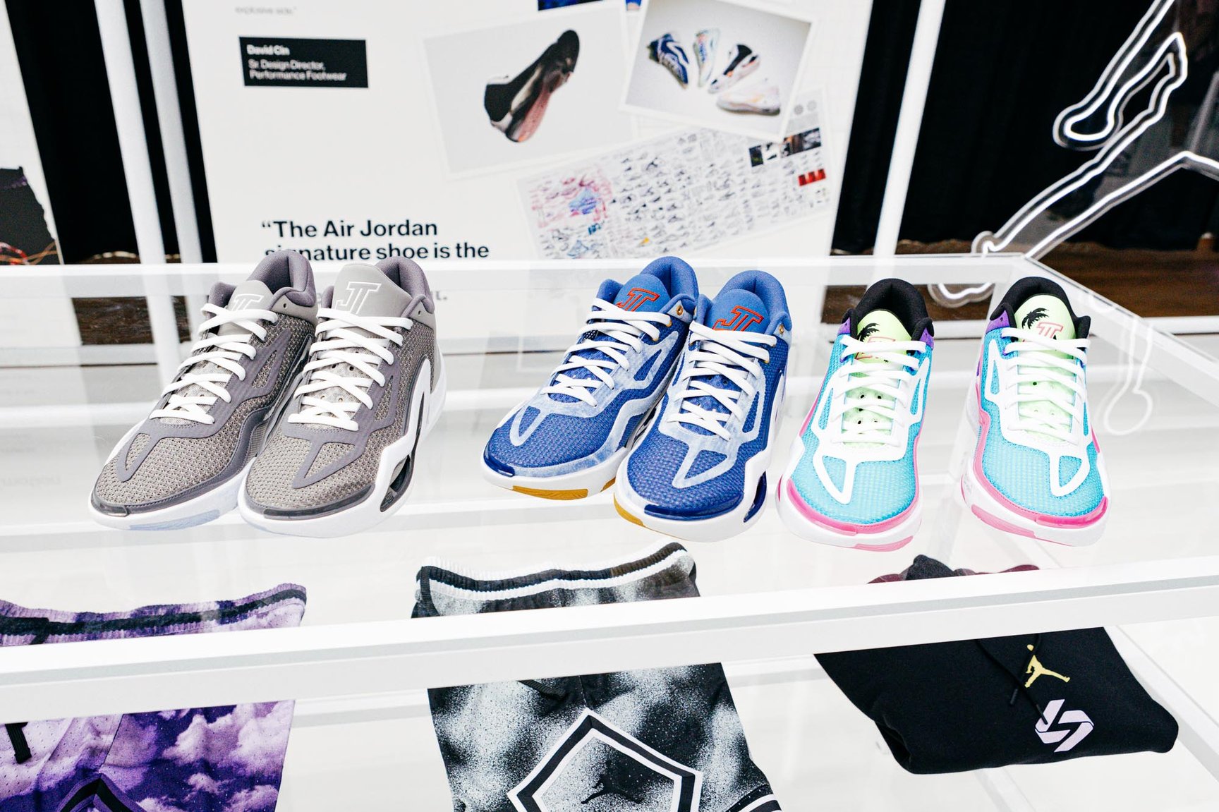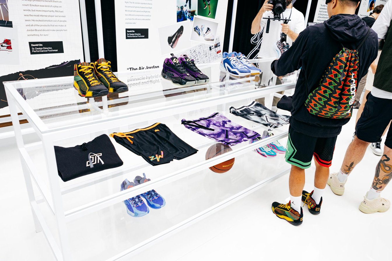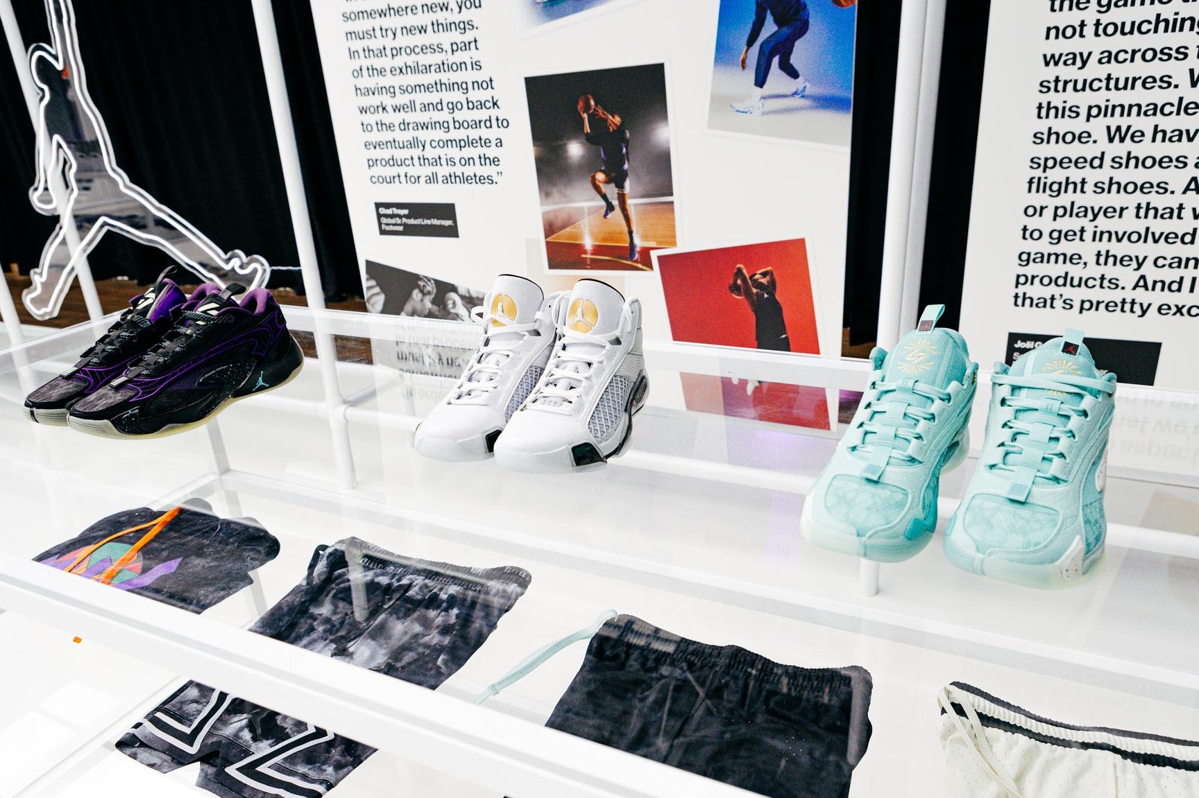 ガラス張りの天井による開放感ある会場では、エア ジョーダン 38をはじめ、ジョーダン ブランド契約アスリートのザイオン・ウィリアムソン(Zion Williamson)、ルカ・ドンチッチ(Luka Doncic)、ジェイソン・テイタム(Jayson Tatum)の3人のシグネチャーモデル「ザイオン 3」「ルカ 2」「テイタム 1」が展示されていました。