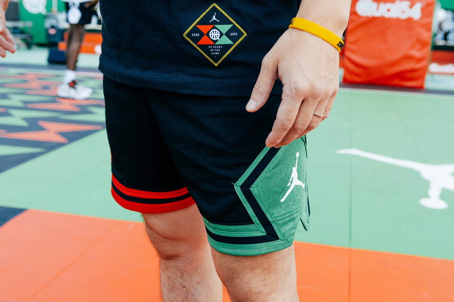 シューズはエア ジョーダンシリーズ最新作の「エア ジョーダン 38(AIR JORDAN 38)」。パリ到着から数時間で新作お披露目となり、意外な形で公開されました。着用しているのはQuai 54限定カラー。ホールド性とクッション性の高さは履いただけで高揚感を覚えます。エア ジョーダン 38の詳細については、本記事DAY2のメディアイベントパートで深掘りします。