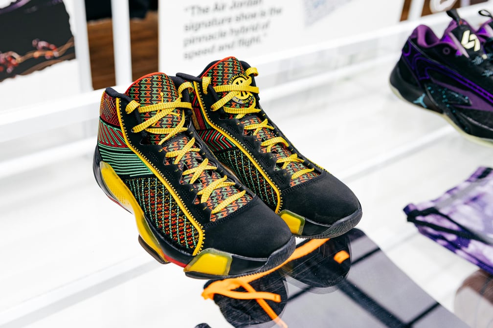 ガラス張りの天井による開放感ある会場では、エア ジョーダン 38をはじめ、ジョーダン ブランド契約アスリートのザイオン・ウィリアムソン(Zion Williamson)、ルカ・ドンチッチ(Luka Doncic)、ジェイソン・テイタム(Jayson Tatum)の3人のシグネチャーモデル「ザイオン 3」「ルカ 2」「テイタム 1」が展示されていました。