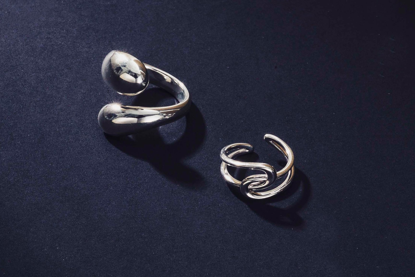 <フォーク&ピンキーリングセット> ¥13,000 +tax(SV925)</br> ボリュームあるリングと細身のピンキーリングのセット。ハンサムライクな手元に仕上げてくれる。