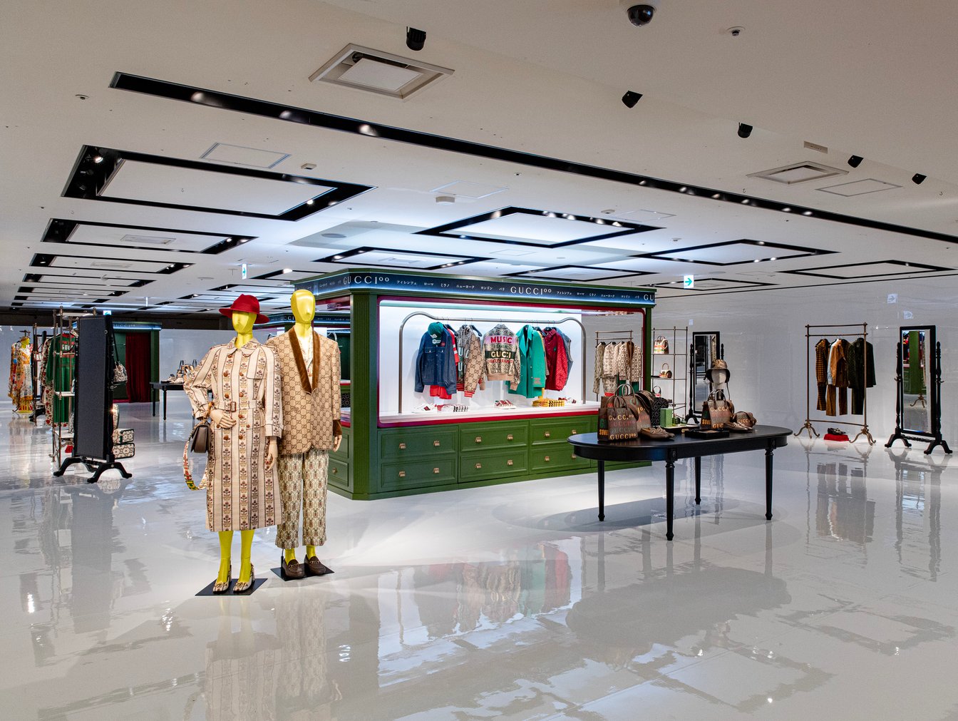 1階のコトコトステージ11は9階と同様のコンセプトを凝縮したスペースで、ウィメンズとメンズのウェアやバッグなどが展開。また「Gucci 100 Pop-up」はオンライン上でも展開し、3Dで再構築されたデジタル版のストア空間を楽しむことができるほか、ポップアップに関連する楽曲のプレイリストが公開されている。