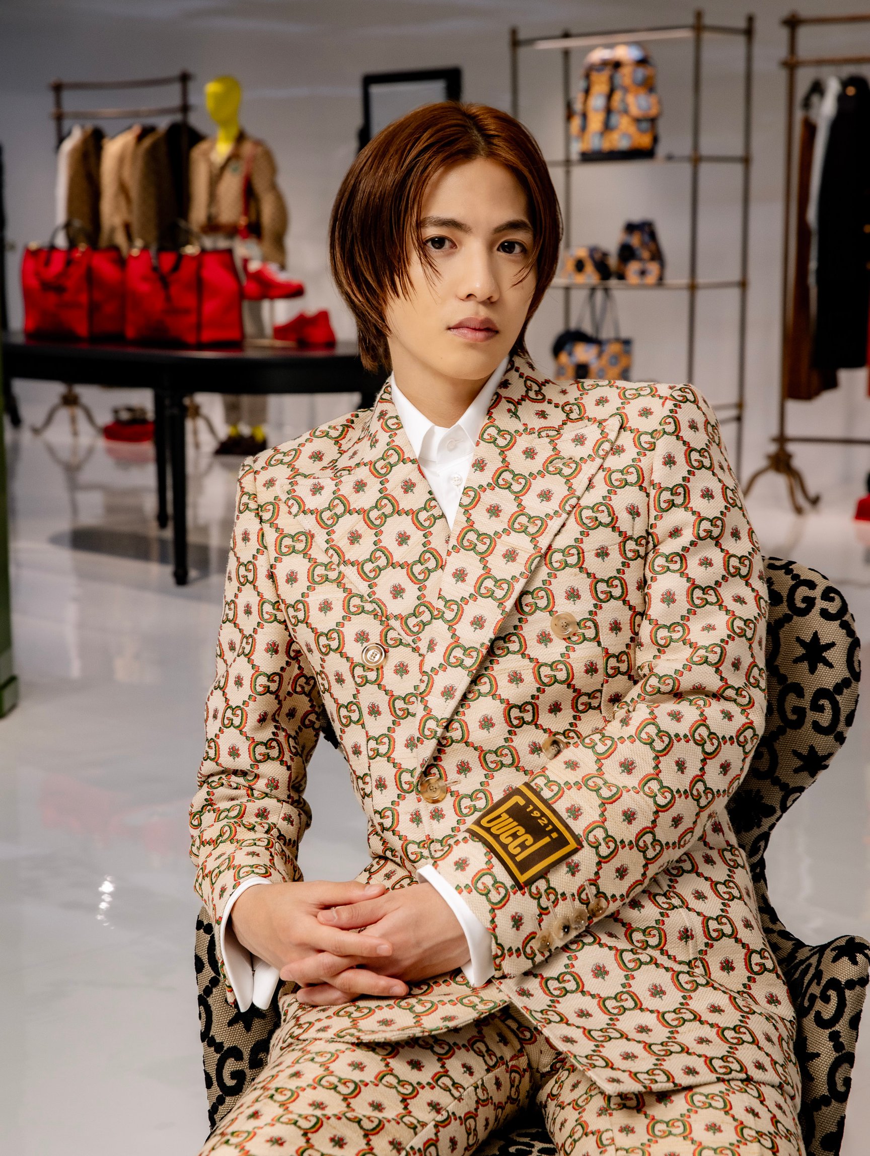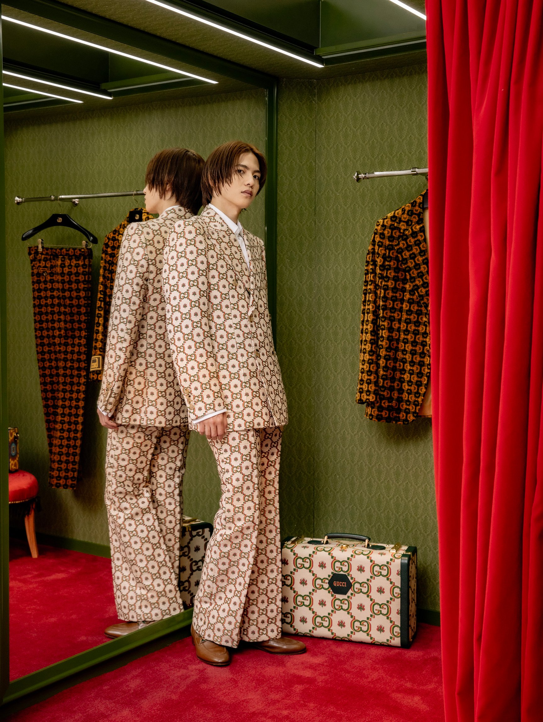 自身もブランドのウェアやスニーカーなどを私服で愛用するという志尊淳は、会場を訪れ「コレクションの世界観がより表現されピックアップされて作り込まれているのがポップアップストアの醍醐味で、普段行くストアとはまた違った楽しみ方が出来ますよね」とコメント。ブランドの魅力について「グッチさんの服は見た時のファーストインプレッションと実際に着てみるとで違った感覚があって。見た目や着心地がとても自分にフィットするんです。デザインはもちろん、ブランドの発信の仕方だったり、ぶれない信念がエッジが効いていて好きです。デザイン性や信念は保ちつつ、時代に呼応して需要を読み取って進化していくという点は自分の仕事にも通ずるところがあり、それを長く積み重ねてきたというのはすごいことだと思います」と語った。