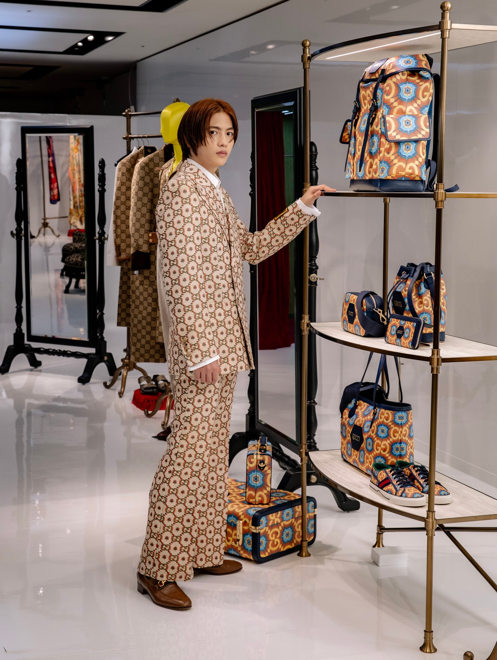 「グッチ(GUCCI)」が大阪・阪急うめだ本店で開催しているポップアップストア「Gucci 100 Pop-up」に俳優の志尊淳が来場した。アニバーサリーイヤーを祝した限定コレクション「Gucci 100」のコンセプトが踏襲された3つのスペースを見て回った。