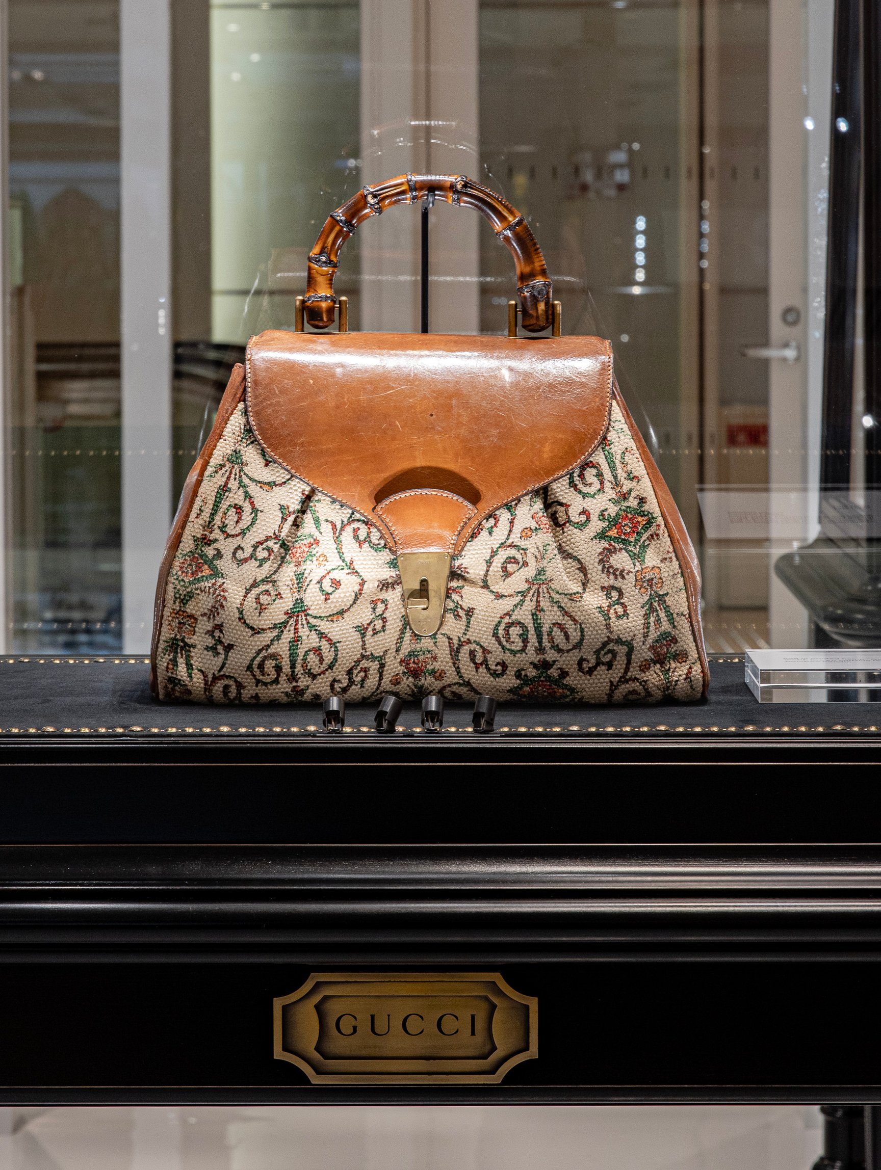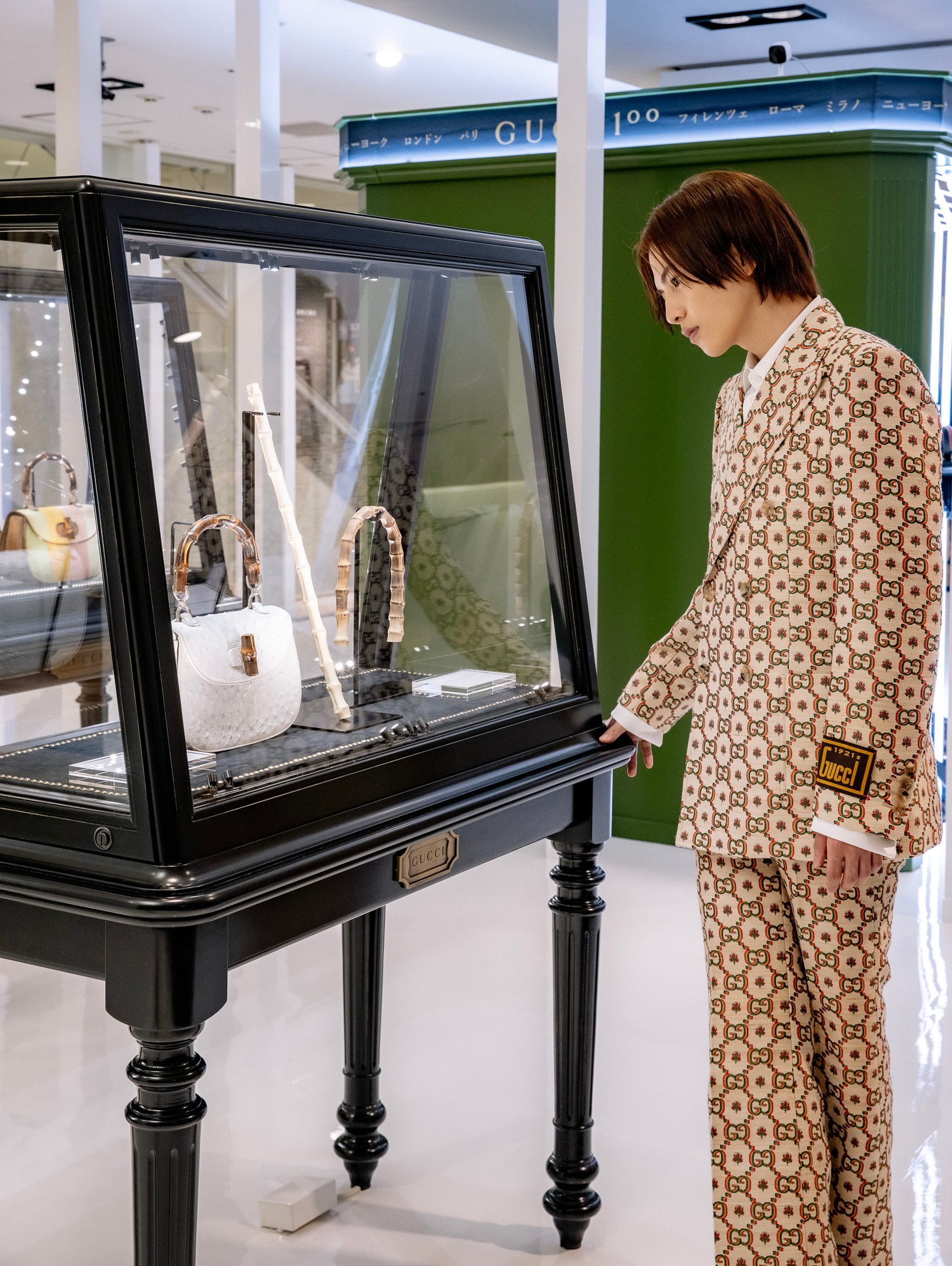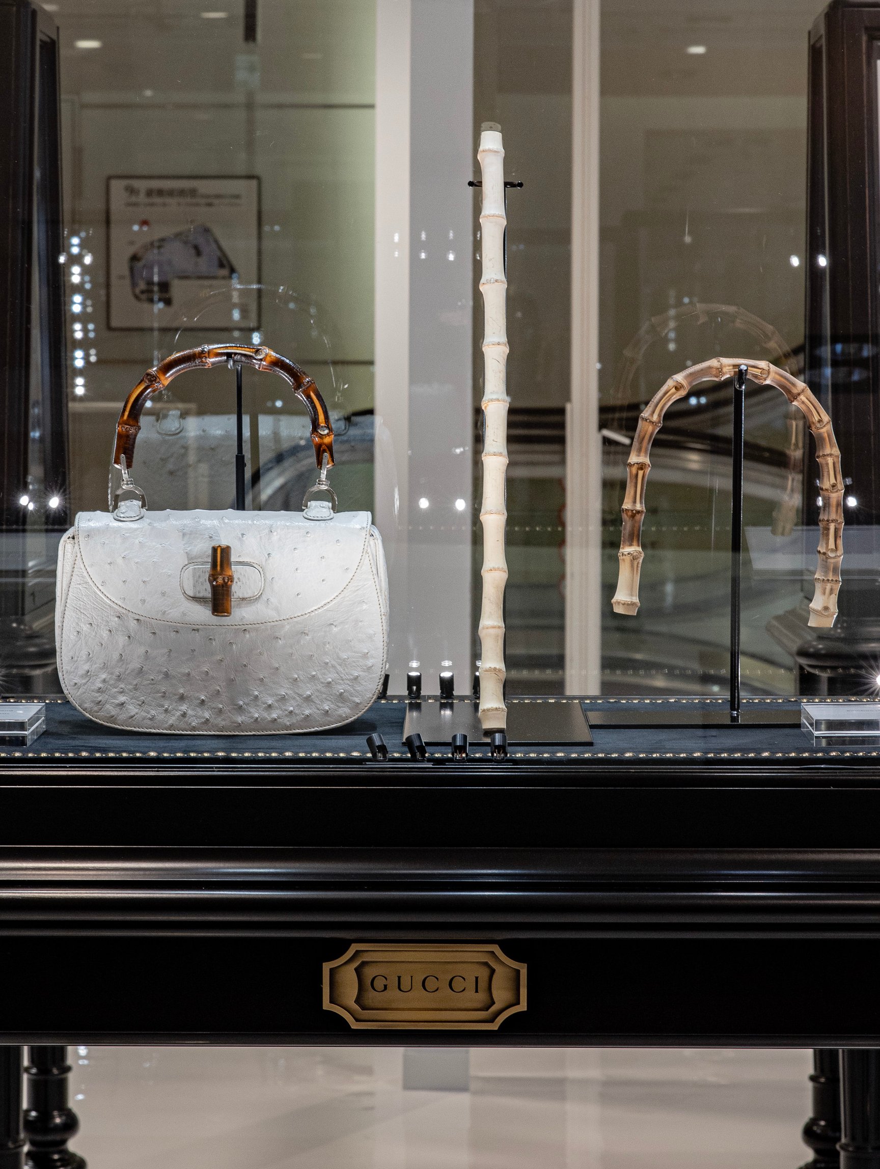 また、ポップアップスペースに隣接するアートステージは、グッチのクラフツマンシップにフォーカスした展示スペース。1950年代のバッグや、バンブー(竹)をバーナーで熱し「U」のシェイプに成形して作られたバンブーバッグなど貴重なアーカイヴがディスプレイされ、2つの空間から過去から現在に受け継がれるグッチのクラフツマンシップとクリエイティビティの軌跡を感じることができる。
