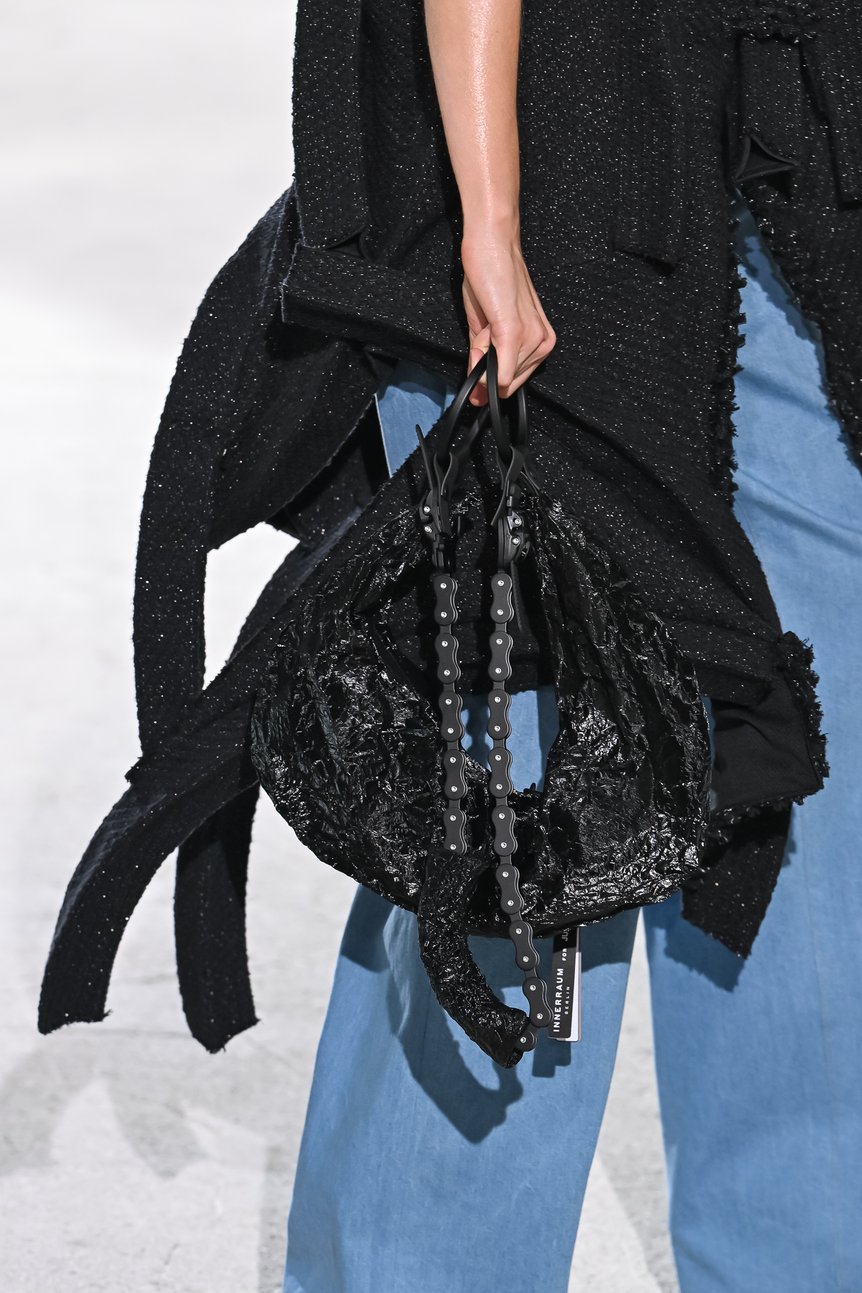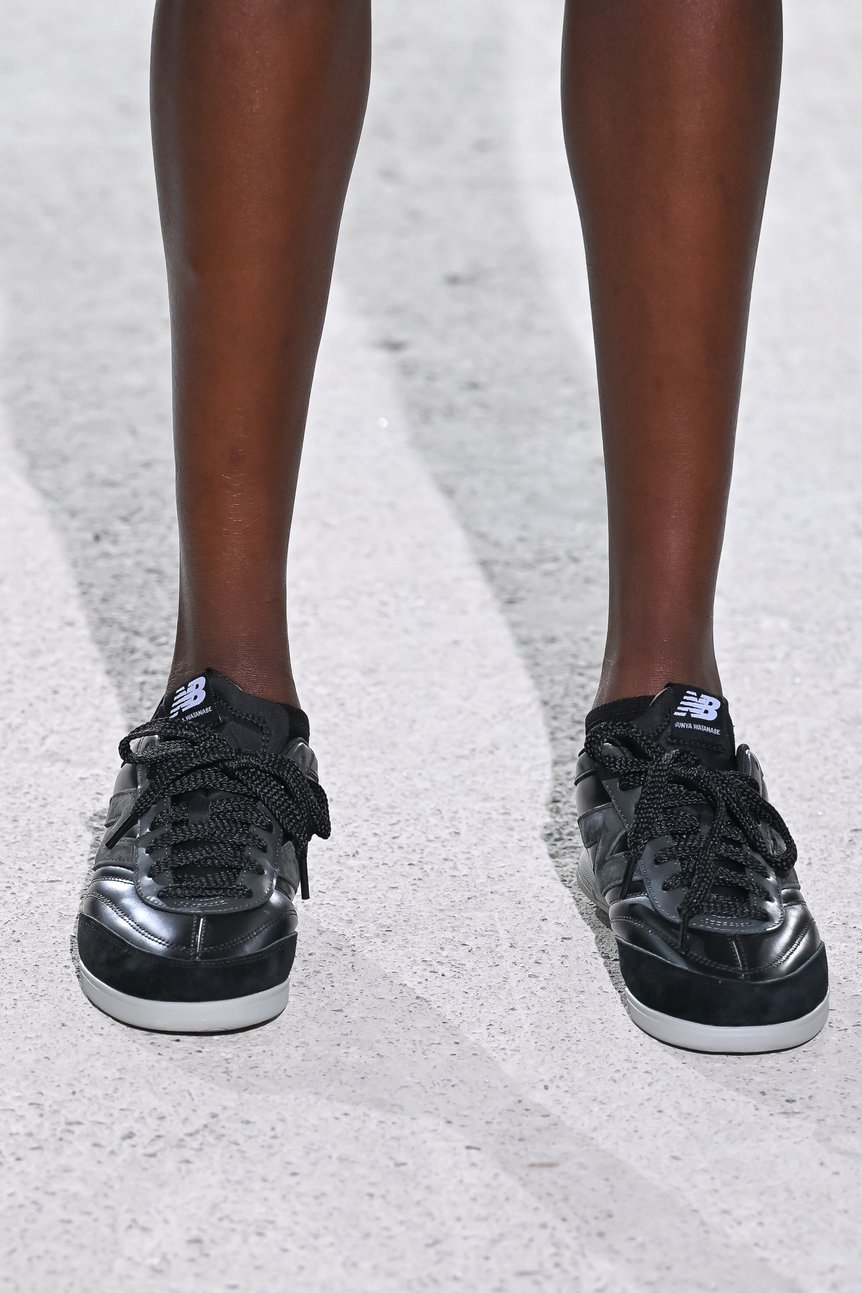 また、足元は「ニューバランス(New Balance)」をはじめとする昵懇のパートナーたちとの共作で、終盤に目を引いた三日月型のショルダーバッグは、前シーズンからコラボしている「インナーラウム(Innerraum)」が携わっている。