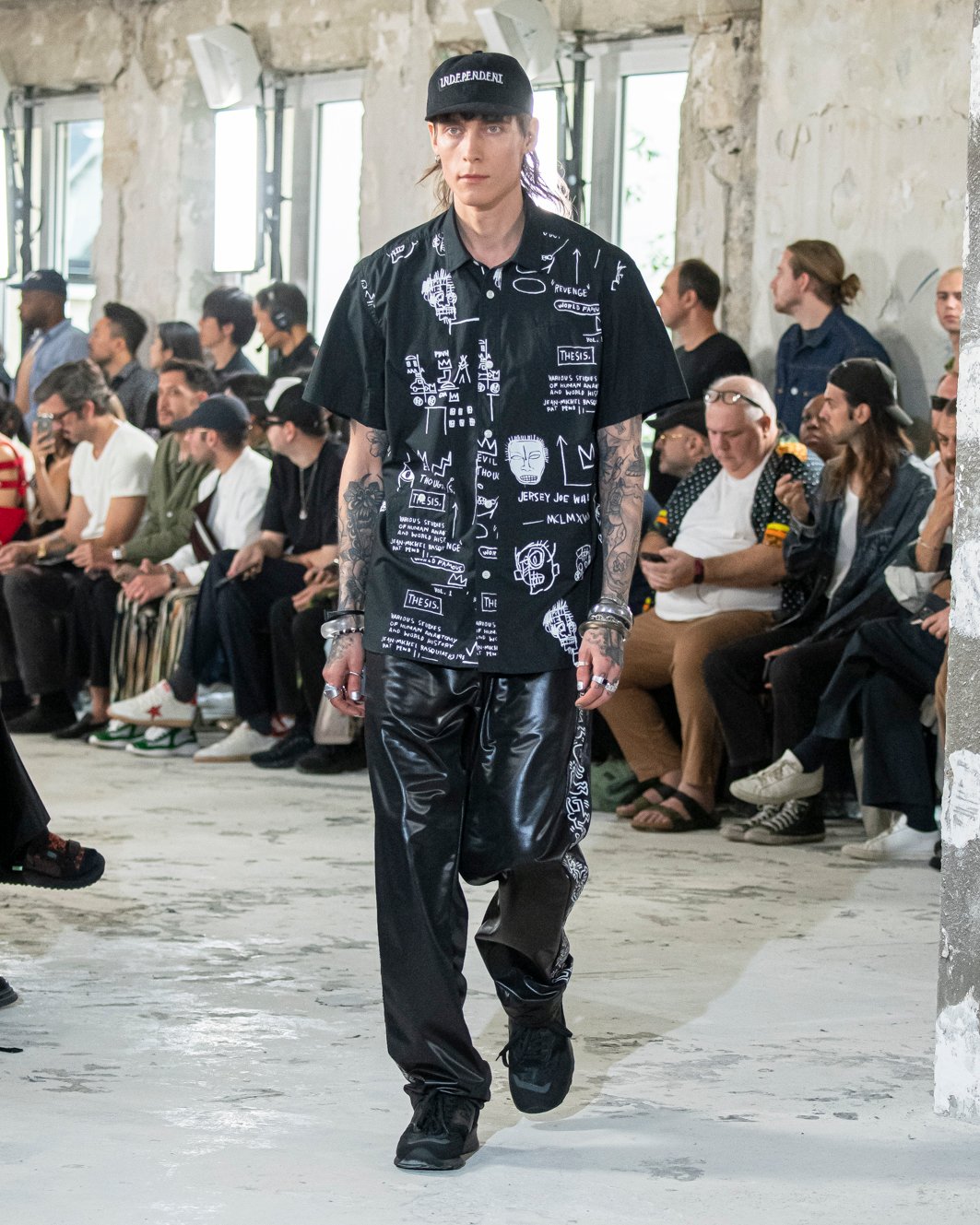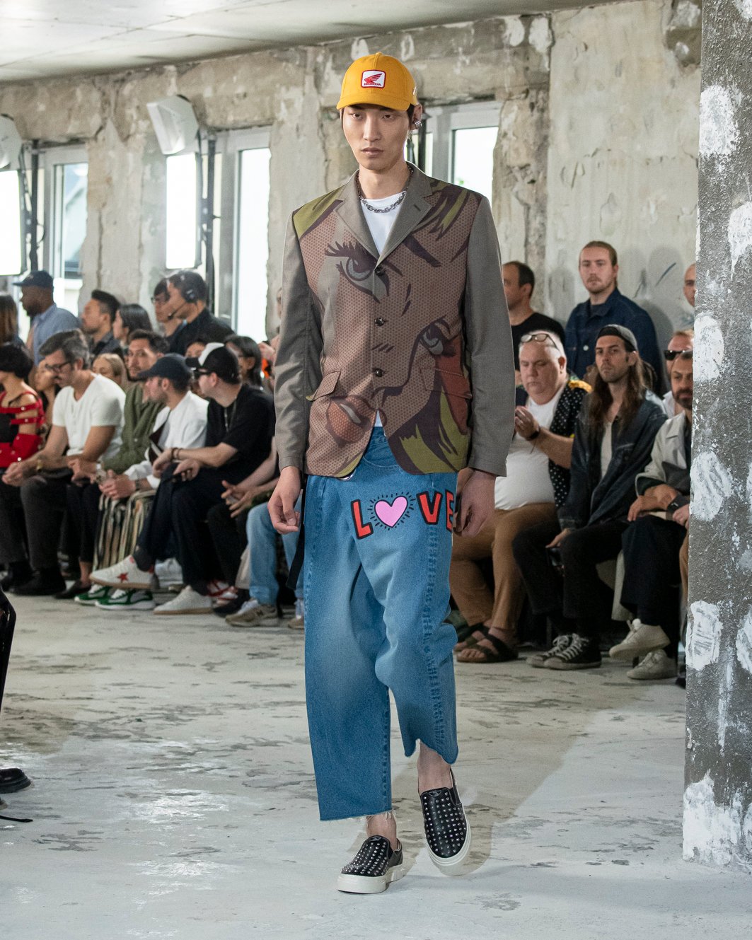 ベースとなるのは、ジュンヤ ワタナベが長く支持を得ているメンズウェアのユニフォーム。そこに、今回の主役としてアンディ・ウォーホル(Andy Warhol)、ジャン=ミシェル・バスキア(Jean-Michel Basquiat)、キース・ヘリング(Keith Haring)、ロイ・リキテンシュタイン(Roy Lichtenstein)といった代表的なアーティストたちの作品を取り入れた。