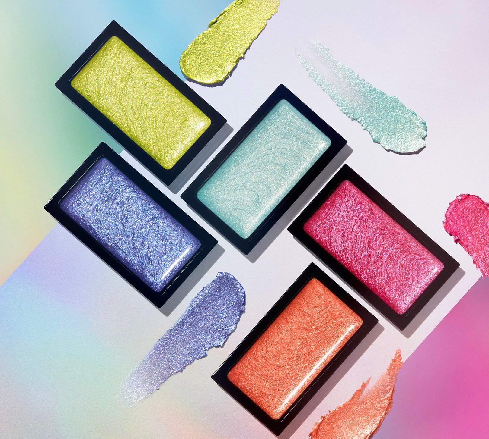 宝石を砕いたようなきらめきと、“むにゅ”っと弾力のあるテクスチャーが特徴の単色アイカラーが登場。オイルコーティングしたピグメントをジェル膜で包み込んだ処方により、純度の高い輝きを目元にプラス。単色での使用だけでなく、手持ちのアイシャドウに重ねたり、アイシャドウベースやフェースにも使えたりするマルチユースタイプです。