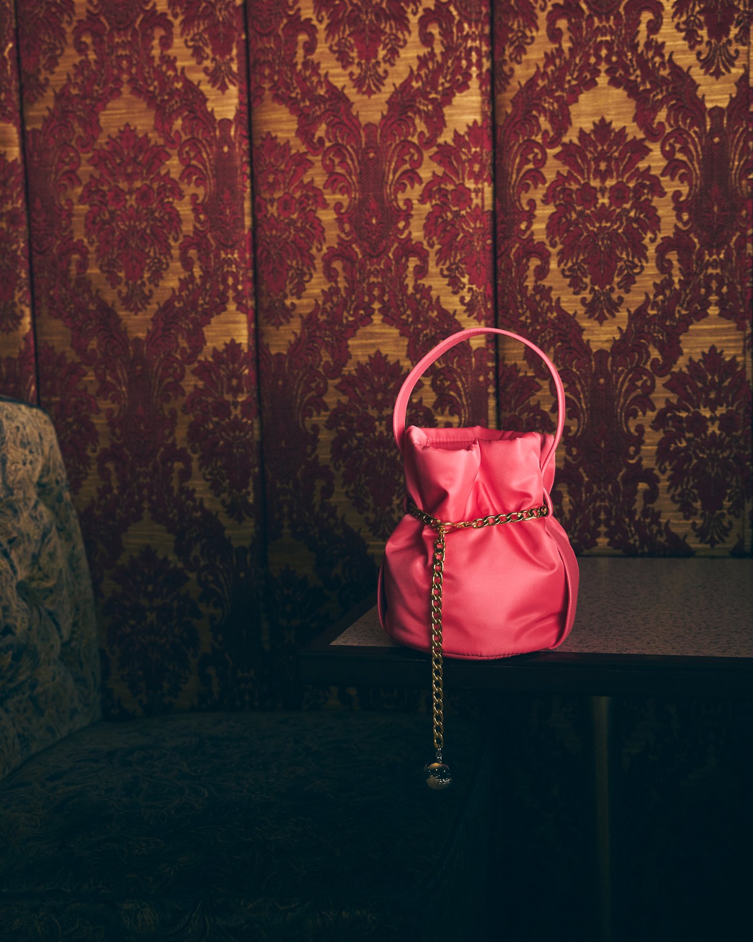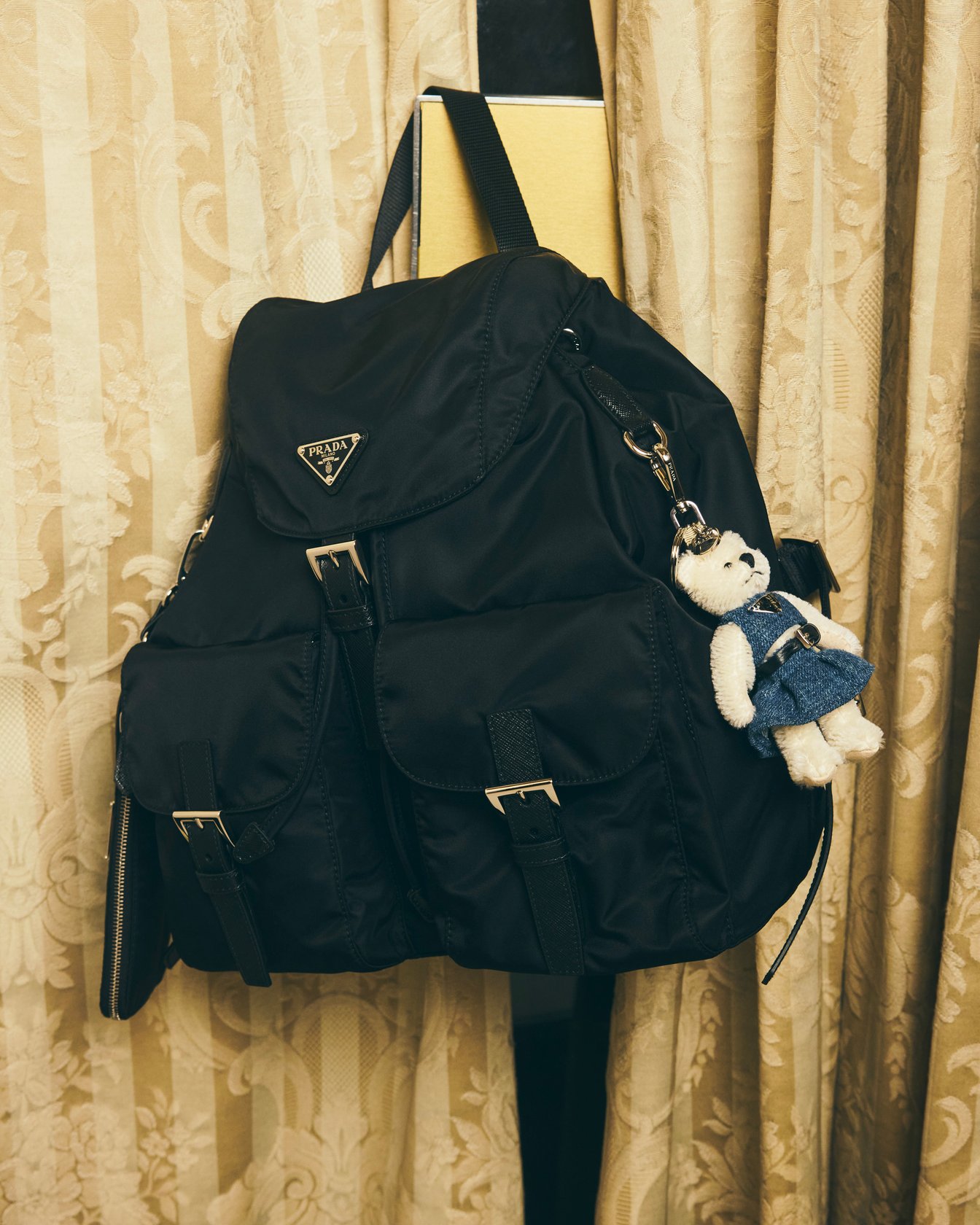 ベルベットやRe-Nylonなど多様な素材にナッパレザーを組み合わせた「プラダ プチ サック ノワール」は、プラダの美学をコンパクトなシルエットに凝縮したバケットバッグ。パッド入りの柔らかなボリュームが、手元をそっと包み込む。球体ペンダント付きのチェーンが揺れるたび、ささやかなきらめきが日常の印象的なシーンを彩っていく。