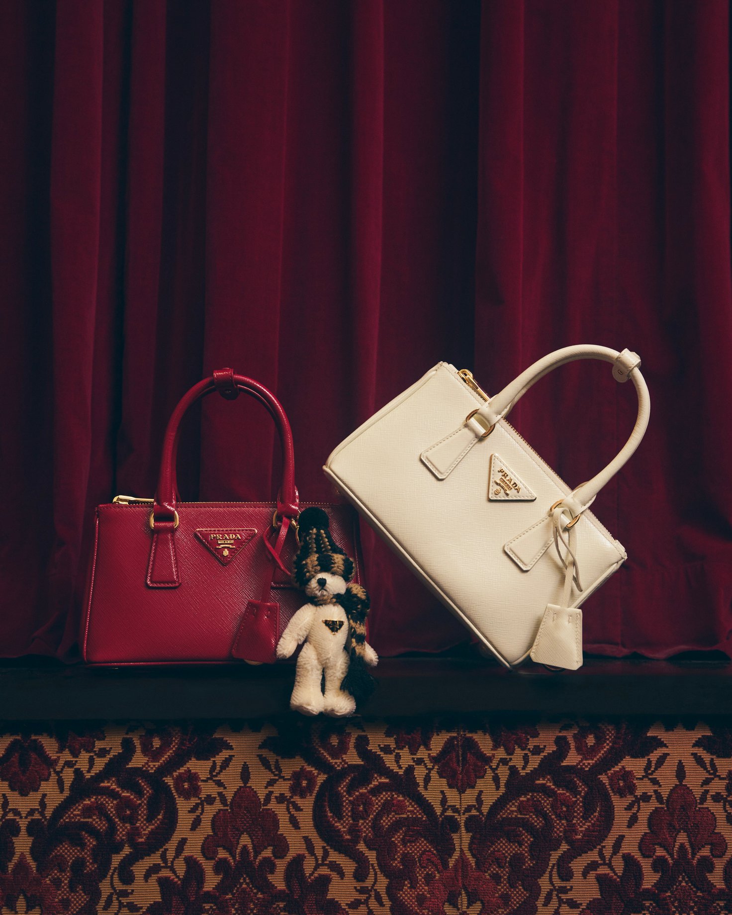「プラダ ガレリア」バッグ(レッド、ホワイト)各57万2000円、チャーム 11万6600円