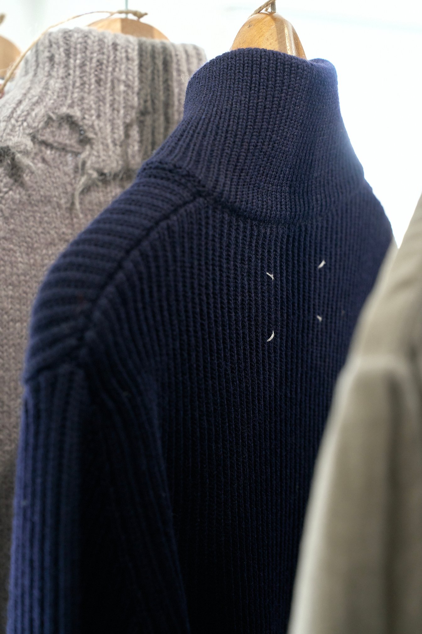 うちで扱っているのは、昔マルタン マルジェラ時代からブランドに関わっていた方たちの私物なんです。年齢や生活の変化で手放してしまうけど、どこでもいいわけじゃない。簡単に市場に出すのは違う、と感じている人たちです。購入される方は僕の顧客だったりもするので、どんな人が持っていたものかも分かっているし、買う側も本当に好きな人たちばかり。だから、ヨーロッパで買い付けたり、フリマサイトを回ったりは一切せず、「マルジェラのOB・OG」と言える人たちから回ってくるのを、口を開けて待っているような感じです(笑)。