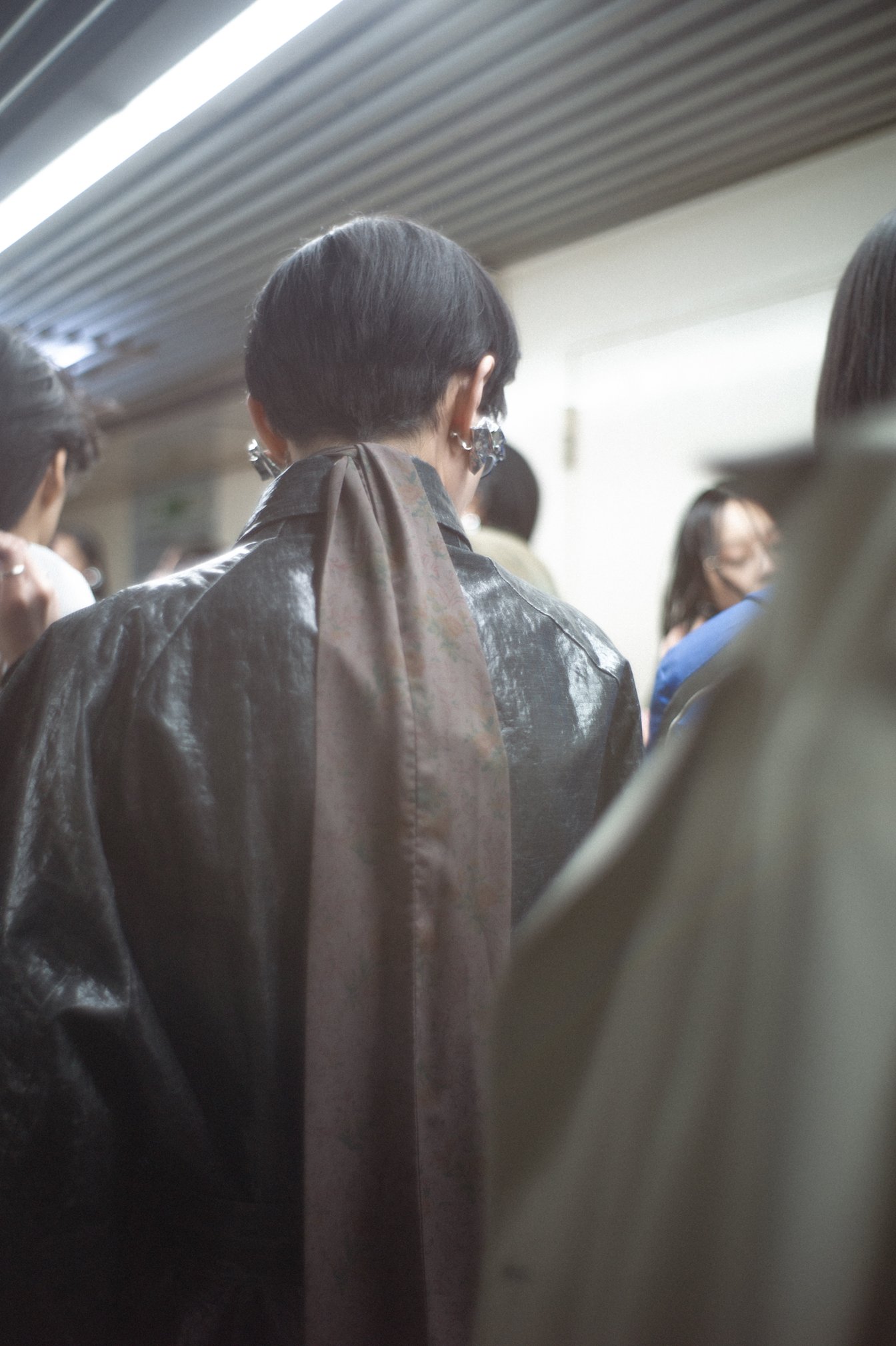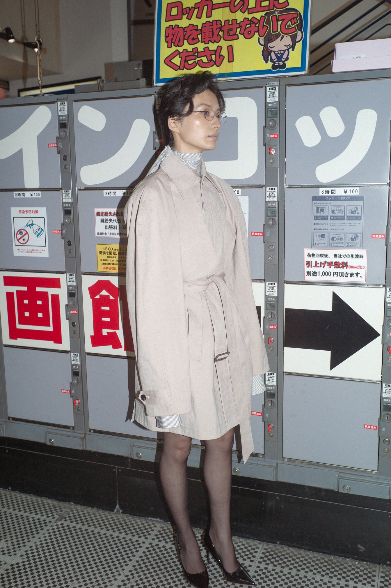 従来のトレンチコートは、緊張感や厳かさのメタファーとして硬質で艶やかな素材を使用していたが、軽やかな素材で日常風景に馴染むように仕上げ、猫背をイメージしたジャケットやコートは、よりウェアラブルなシルエットにアップデート。思春期の鋭敏な自意識が投影されたリボンシャツは、シルエットをタイトにすることで成熟した印象を与える。