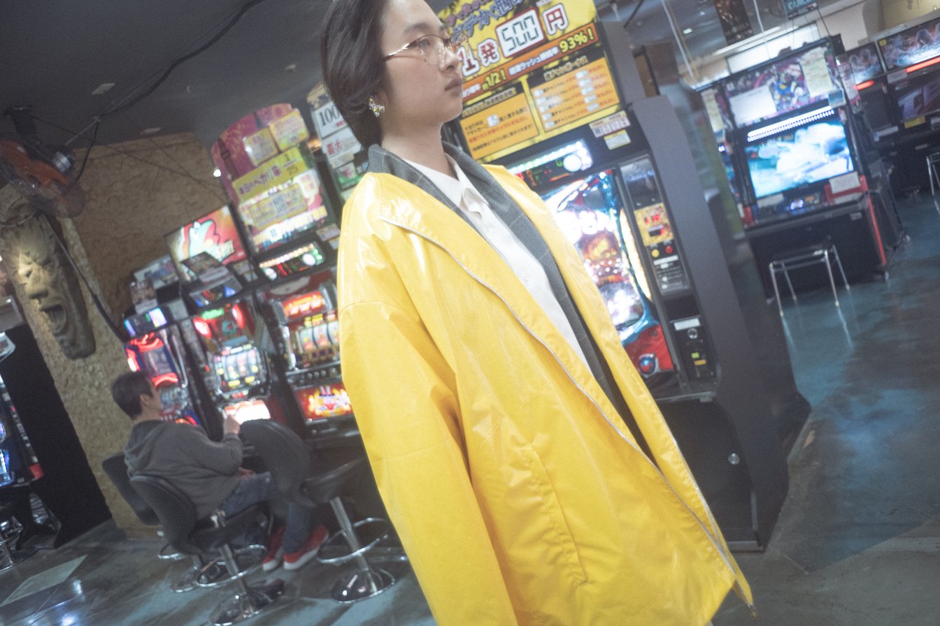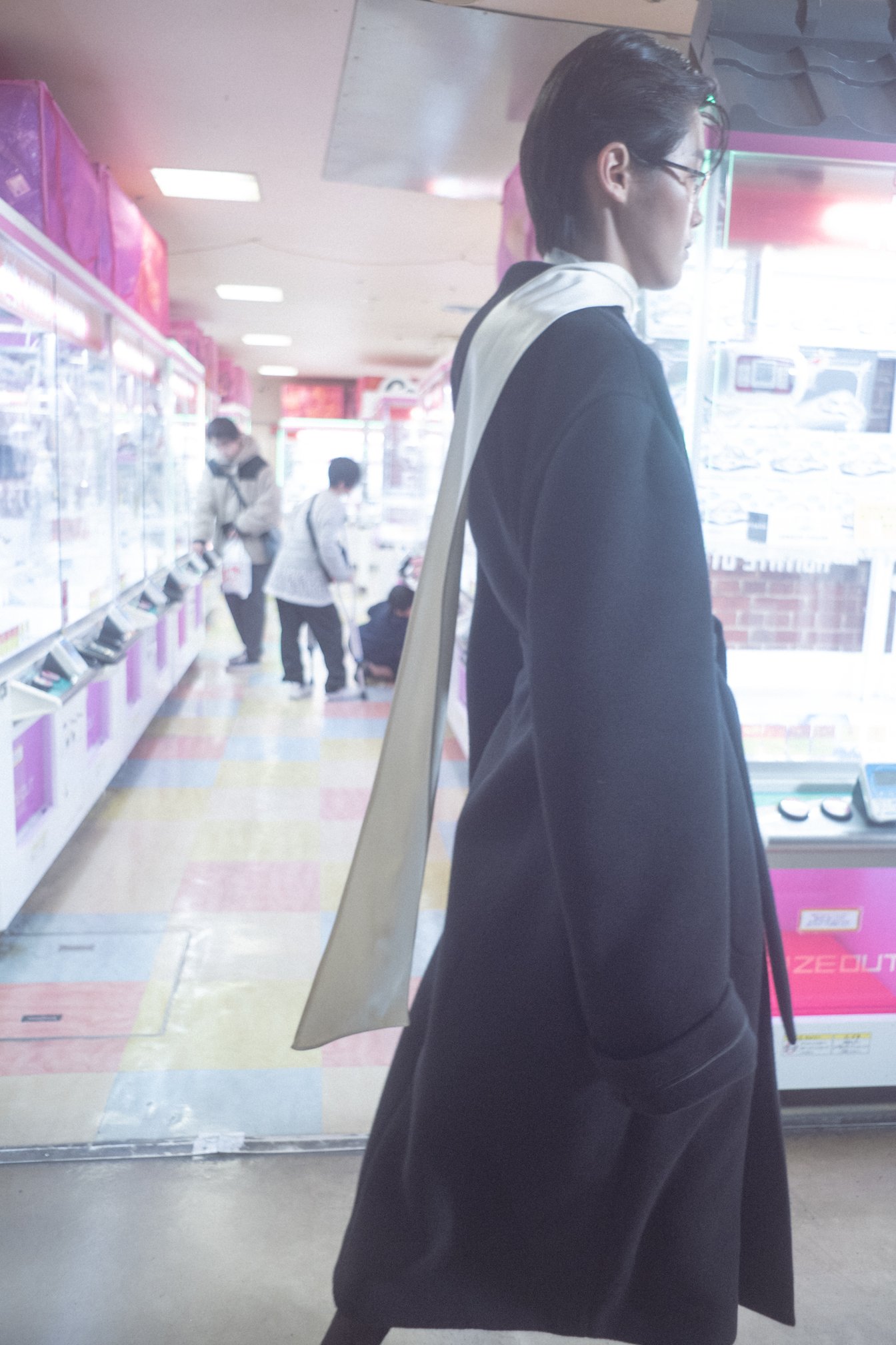 1年前のショーは吉田が小学校から大学までの16年間を過ごした立教大学のキャンパスが舞台となった。夜の校舎から昼間の繁華街のゲームセンターへ。同じく学生時代を出発点に、同じ池袋という街の中で発生した2つのコレクション。地理的には小さな移動のようで、象徴的なものから現実的な表現まで全く違った意味を持つ。それはクリエイションの多面性と同時に、表裏一体な自己と社会の有り様を浮き彫りにするようでもある。