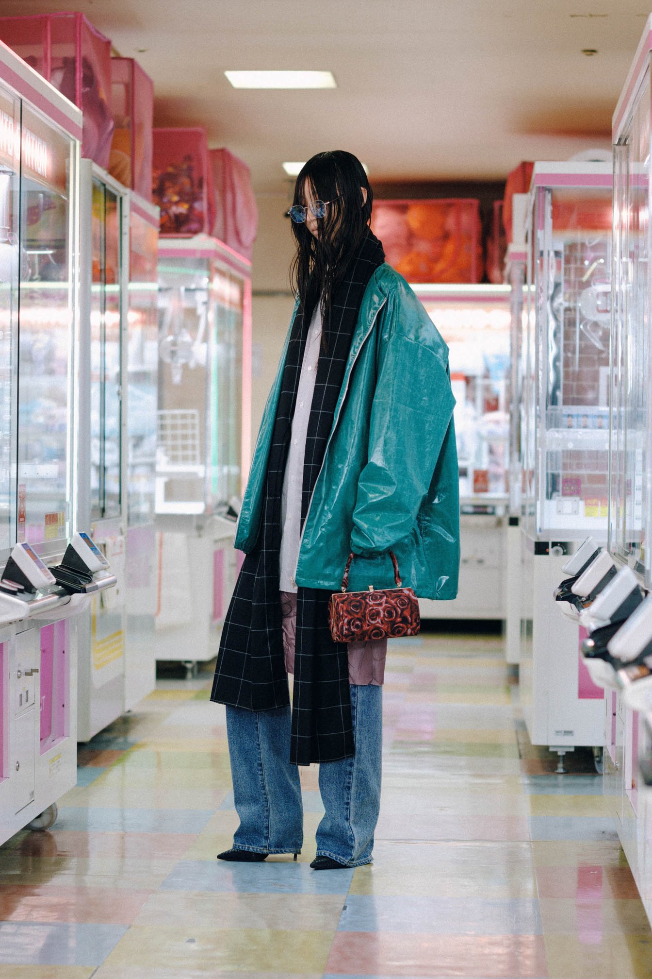 コレクションルックとして服と人間像を見せるためのスタイリングというよりも、そこに存在する個人の息遣いや、アーカイヴピース同士のマリアージュを感じさせる抜け感がある。どこか生活感のあるモデルたちは、とにかく池袋という雑多な街によく似合っていた。
