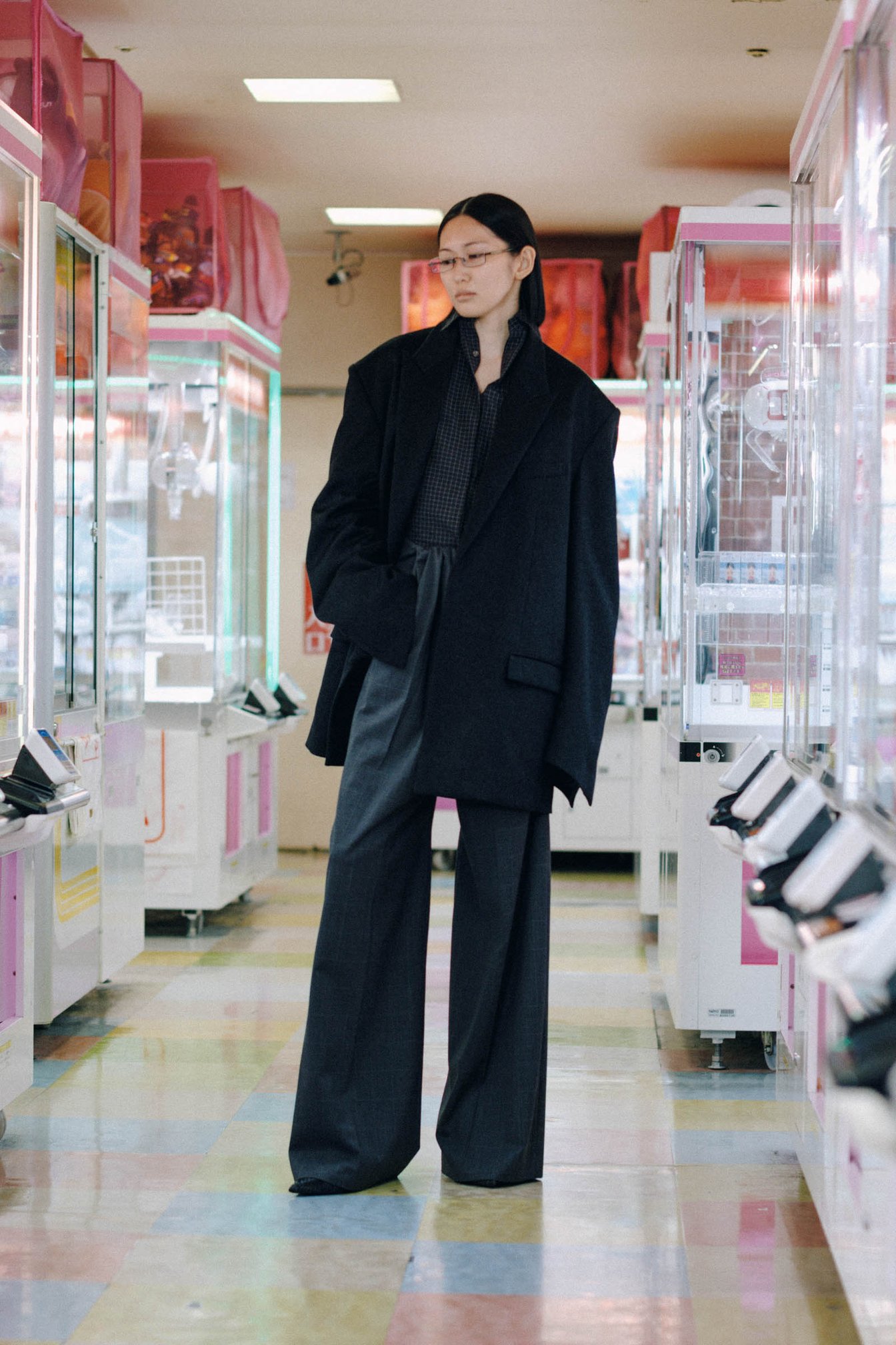 なんでも揃う便利さがありながら、雑多で騒々しくて、俗っぽさが拭えない。色々な路線が乗り入れ、世代もジャンルもバラバラな人々が、交錯するその池袋の風景には、着飾ることの手前に人間たちの現実と生活が存在している。そんな「街=社会」との接続や人間の息遣いを感じるモデルたちの佇まいは、コレクションをよりリアルクローズとして実感させるために機能していた。そして、そうした雑音の中に存在しても霞まない品の良さこそ、この数シーズンで獲得したブランドのエレガンスの証明なのだろう。